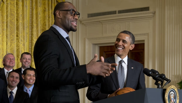 “Υπερήφανος για τον φίλο μου, τον Λεμπρόν Τζέιμς, για τον τέταρτο τίτλο, την τέταρτη βράβευση ως MVP των τελικών αλλά για το γεγονός πως ανταποκρίνεται στις απαιτήσεις μετά από 17 σεζόν και τις ξεπερνάει ως ένας εξαιρετικός ηγέτης που είναι στο παρκέ αλλά και στον δημόσιο βίο όπου μάχεται για το δικαίωμα στην εκπαίδευση, την κοινωνική δικαιοσύνη και την Δημοκρατία μας”.