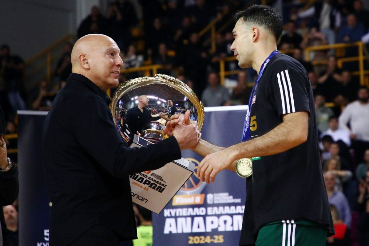 Η απονομή του τροπαίου στον Κυπελλούχο Παναθηναϊκό AKTOR δια χειρός Νίκου Γκάλη.