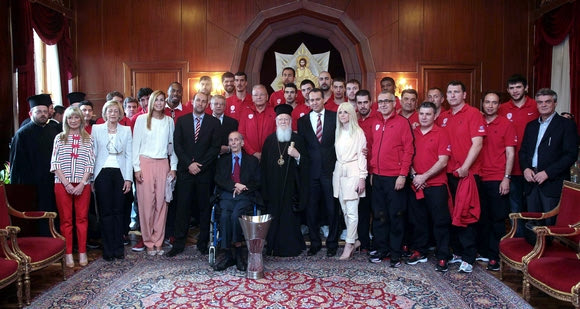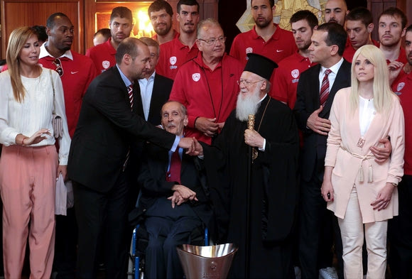 Η οικογένεια Αγγελόπουλου στην Κωνσταντινούπολη, έχοντας στεφθεί Πρωταθλητές Ευρώπης με τον Ολυμπιακό στο Final Four του 2012: