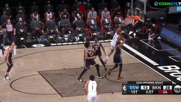 Ο Κέλι Ούμπρε δεν έκανε το ντεμπούτο που θα ήθελε με τους Γουόριορς, αφού οι Νετς διέλυσαν το Γκόλντεν Στέιτ με 125-99. Πρόσφερε όμως πιθανότατα την κορυφαία φάση της βραδιάς.