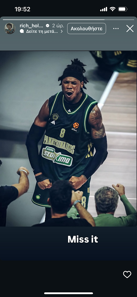 Ωστόσο, ο Χολμς δεν κρατιέται και ανυπομονεί να επιστρέψει στα παρκέ, με τον ίδιο να δημοσιεύει ένα στόρι στον προσωπικό του λογαριασμό στο Instagram, ανεβάζοντας μία πανηγυρική φωτογραφία του, ενώ έγραψε “μου έχει λείψει…”