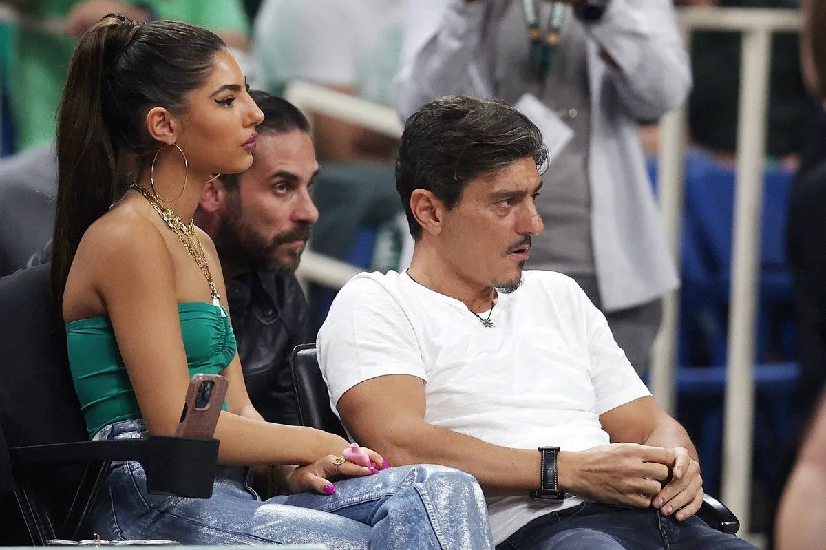 Ο μεγαλομέτοχος της πράσινης ΚΑΕ παρακολούθησε την αναμέτρηση από τις court seats του κλειστού των Ολυμπιακών Εγκαταστάσεων μαζί με τα παιδιά του.
