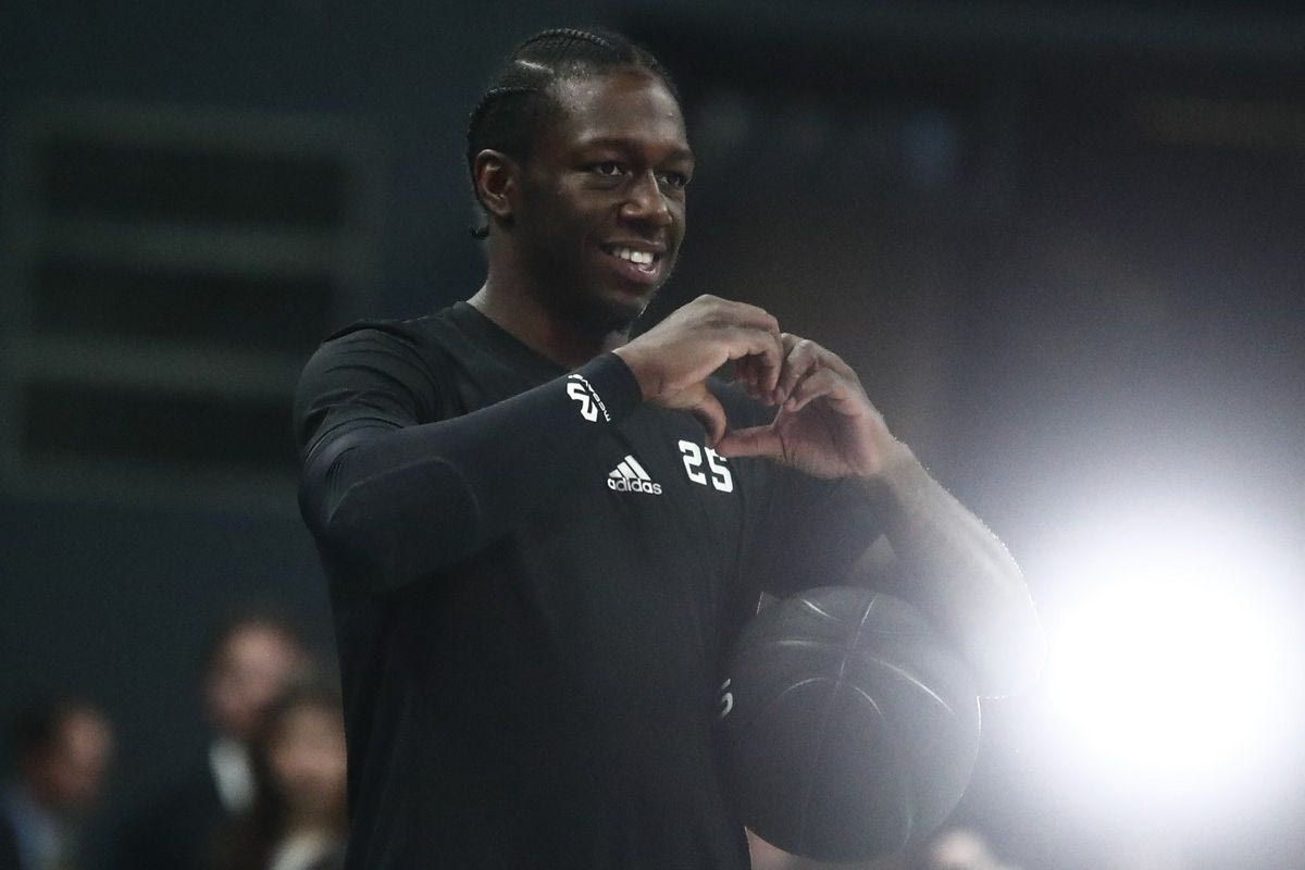 Αποθέωση στο ΟΑΚΑ με συνθήματα “MVP, MVP” για τον Κέντρικ Ναν που ανταπέδωσε με “καρδούλα” πριν από το τζάμπολ του αγώνα με τον Ερυθρό Αστέρα για την τελευταία αγωνιστική της κανονικής περιόδου της EuroLeague.