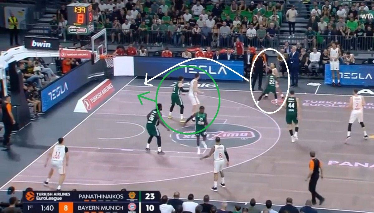 Με τους γκαρντ του Παναθηναϊκού AKTOR να κάνουν αλλαγη στο σκριν, ο Οσμάν λέει στον Ναν να πάει στην αδύνατη πλευρά και πηγαίνει αυτός πάνω στον Μπράνκοβιτς.