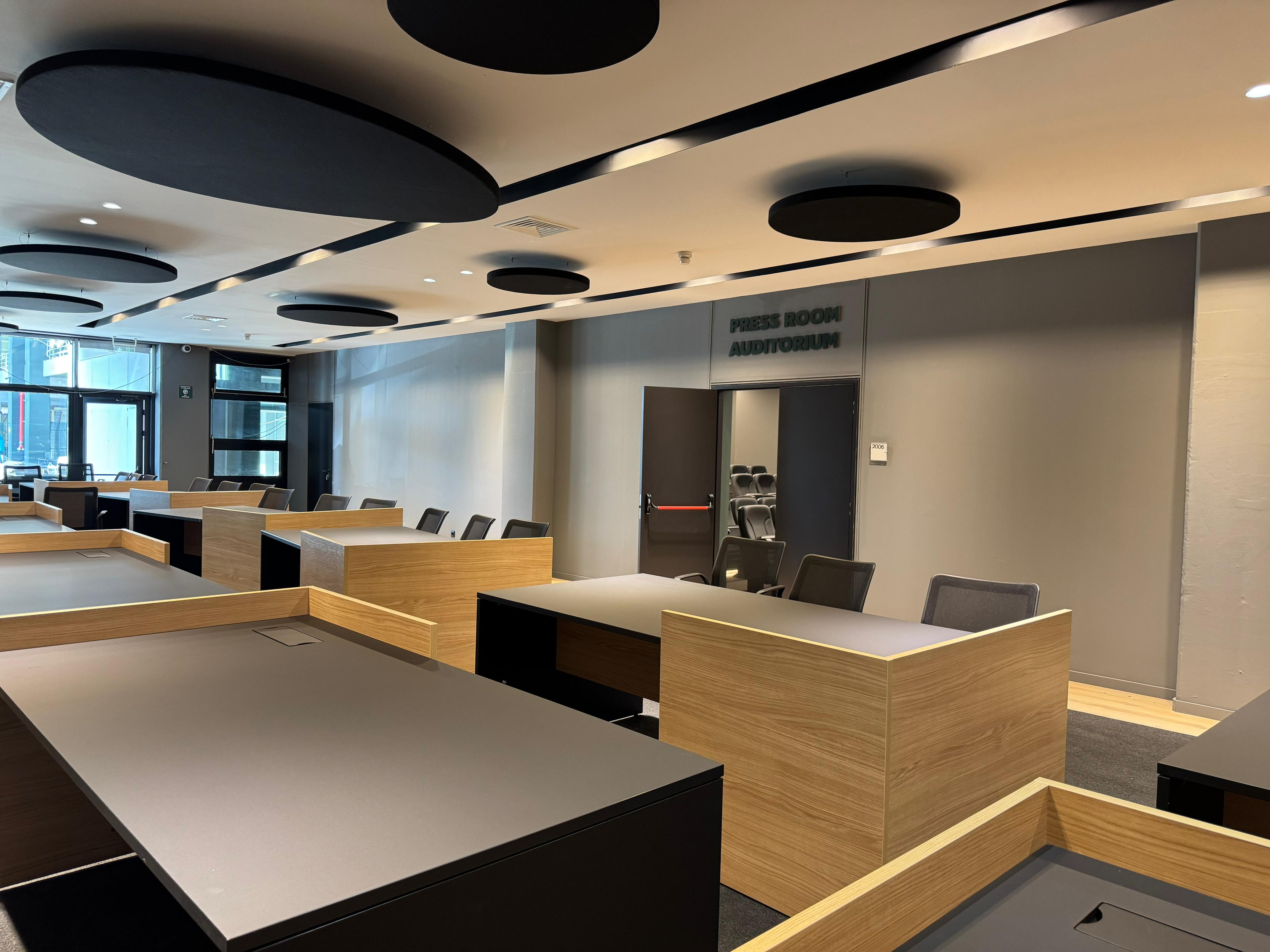 Οι χώροι εργασίας των δημοσιογράφων στην αίθουσα Τύπου, όπως έχουν διαμορφωθεί με την ανακαίνιση του ΟΑΚΑ από τον Παναθηναϊκό AKTOR.