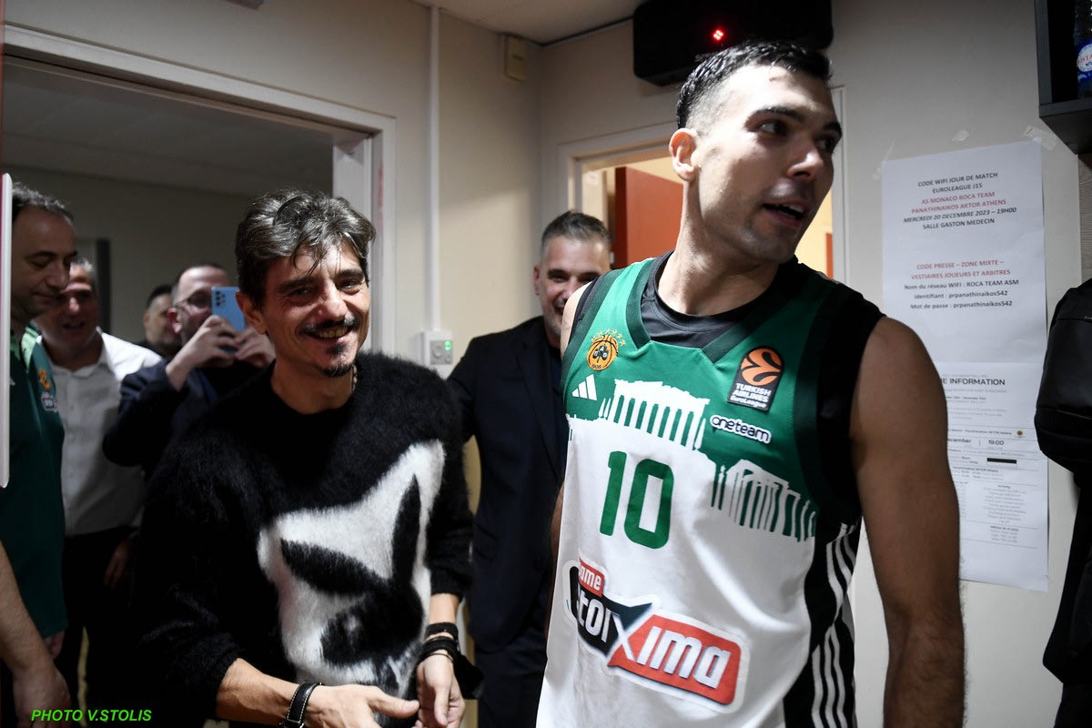 Ο Δημήτρης Γιαννακόπουλος μετά τη μεγάλη νίκη του Παναθηναϊκός AKTOR επί της Μονακό βρέθηκε στα αποδυτήρια των πράσινων για να μοιράσει συγχαρητήρια στους παίκτες του Αταμάν.