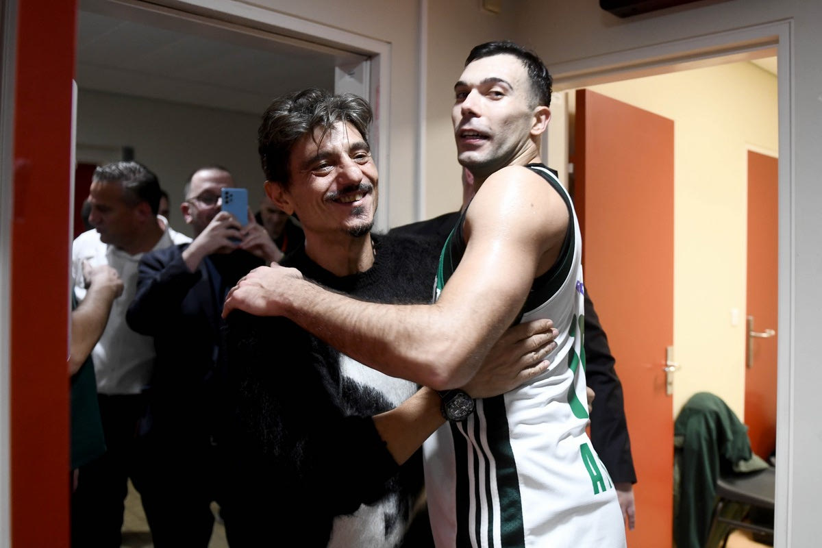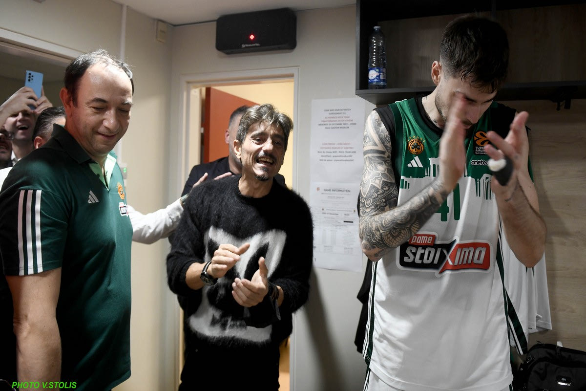 Ο Δημήτρης Γιαννακόπουλος βρέθηκε στα αποδυτήρια για να δώσει συγχαρητήρια στους παίκτες του Παναθηναϊκού με τον Σλούκα να τον αγκαλιάζει και τον Λεσόρ να του ζητάει να βρίσκεται σε κάθε παιχνίδι.