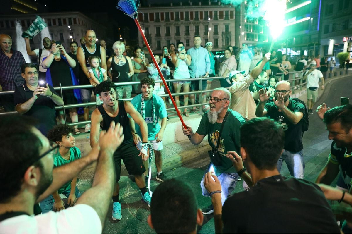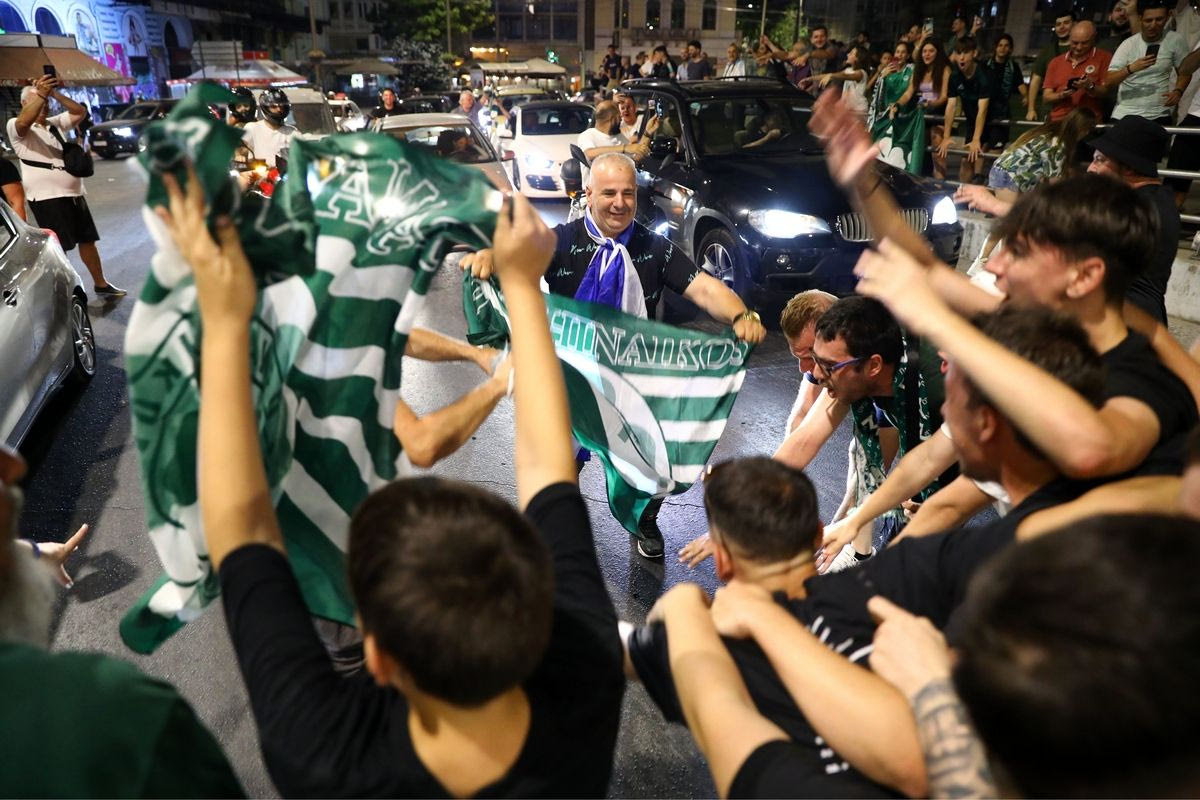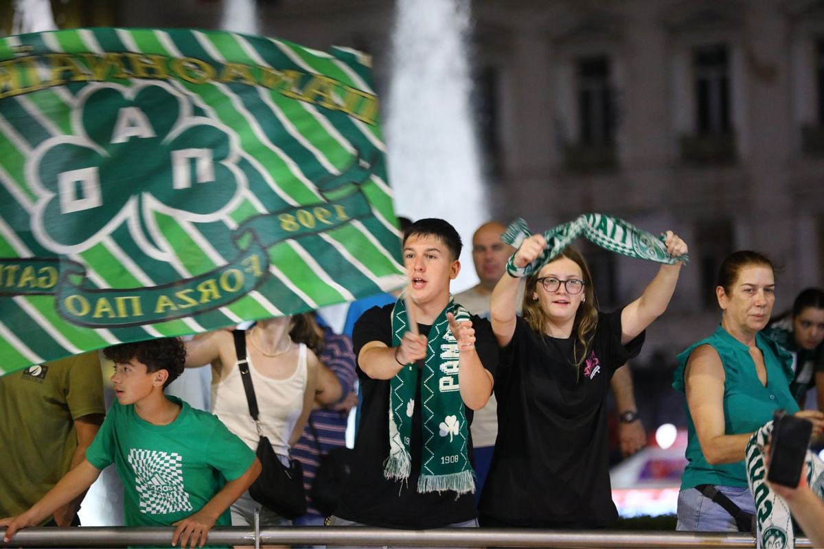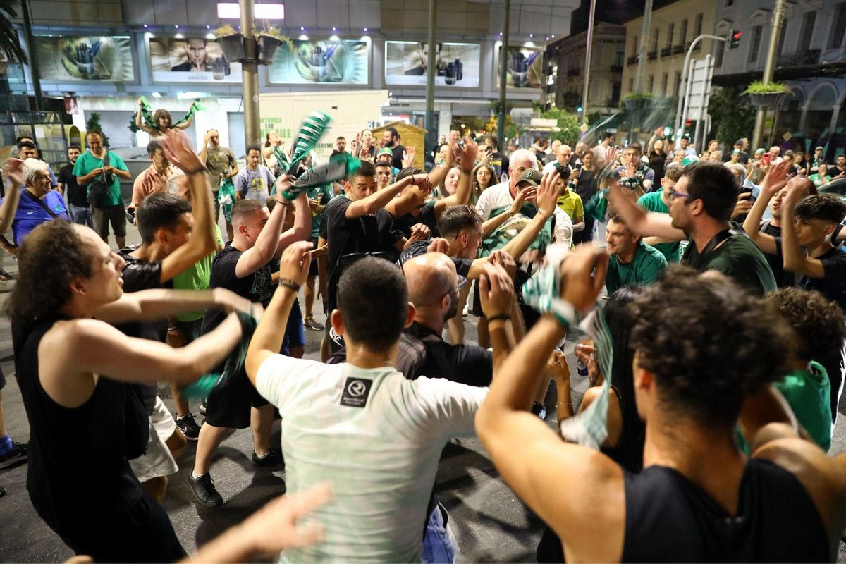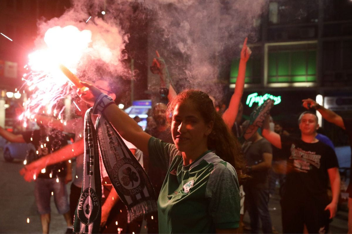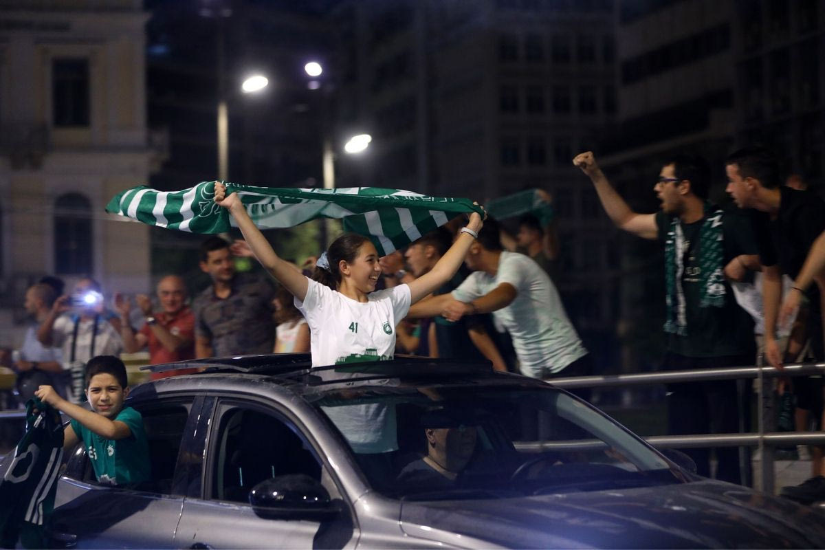 Ο Παναθηναϊκός AKTOR επέστρεψε στην κορυφή του ελληνικού μπάσκετ μετά από τρία χρόνια, με τους φίλους της ομάδας να το γιορτάζουν έντονα στο κέντρο της Αθήνας.