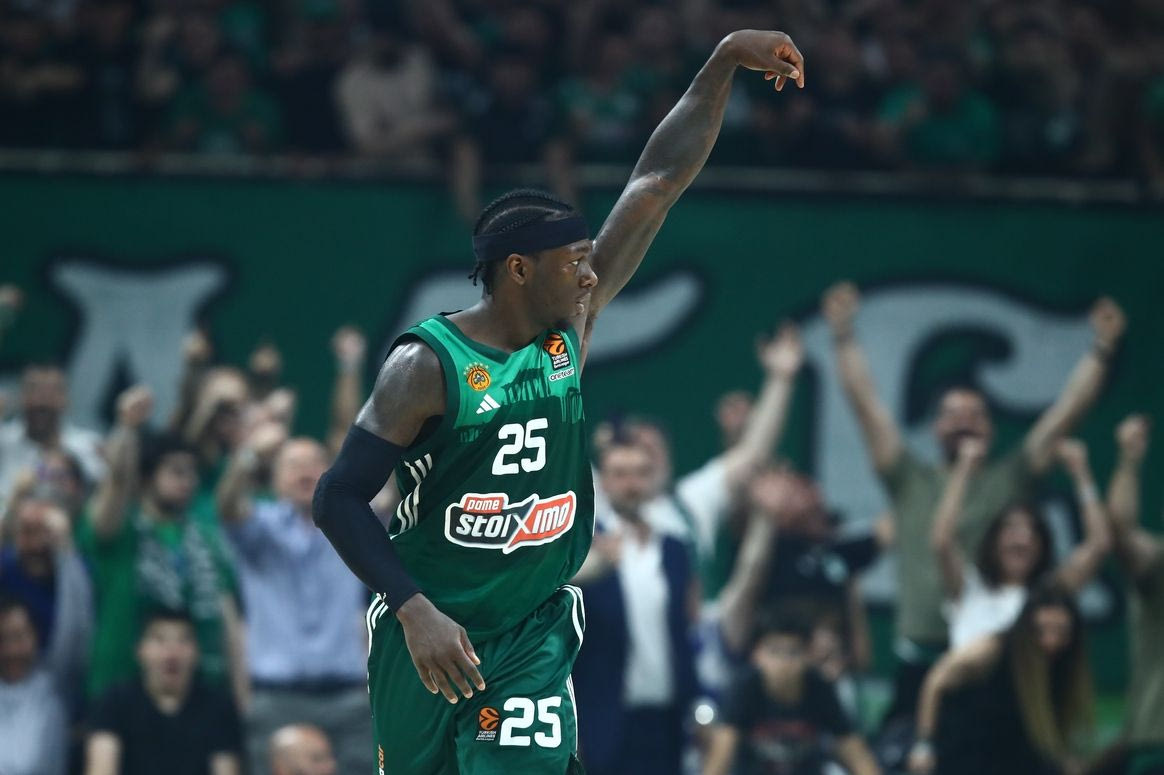 Ο Αμερικανός γκαρντ έλαβε την μπάλα μετά από την προσποίηση του Παπαπέτρου και ευστόχησε σε σουτ τριών πόντων για το 64-56 των πράσινων σε κομβικό σημείο της αναμέτρησης και με 7 λεπτά να απομένουν για τη λήξη του αγώνα.