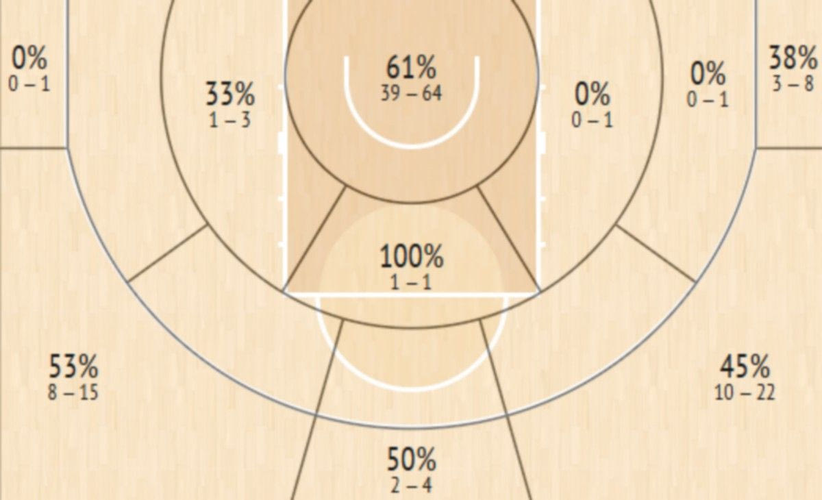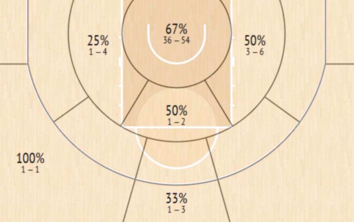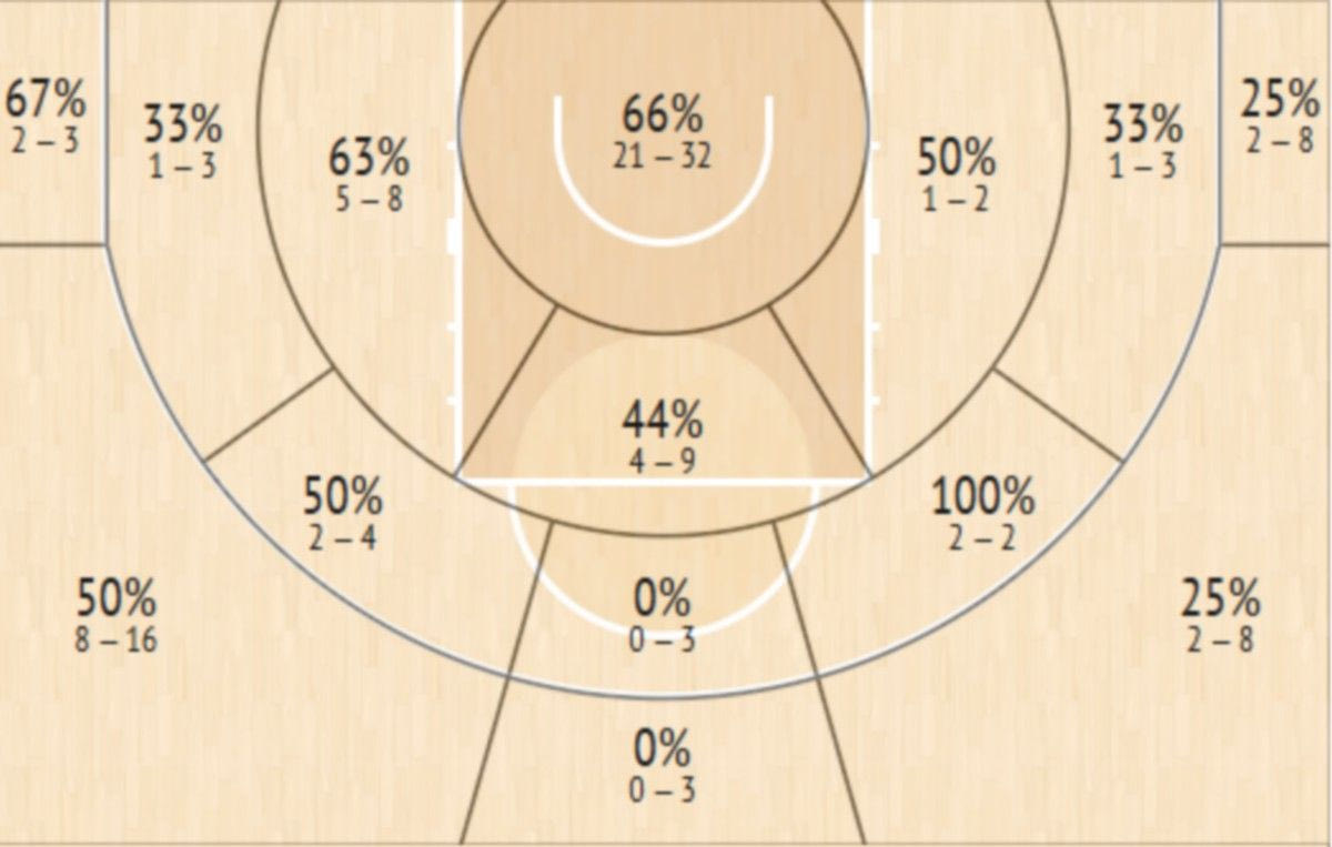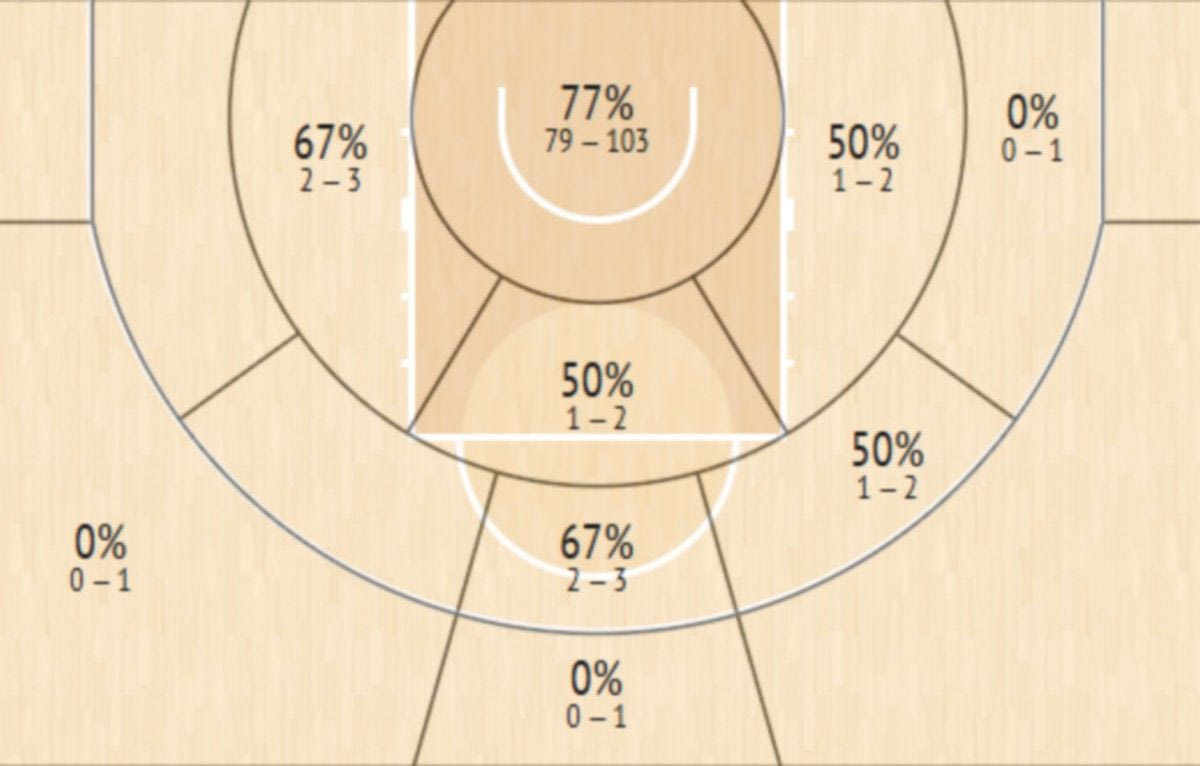 : 13.4 πόντοι, 7.1 ριμπάουντ, 1. Ασίστ και 1 κλέψιμο μέσο όρο με 74.1% στα δίποντα σε 27 λεπτά συμμετοχής (17 αγώνες – 16 ως βασικός)