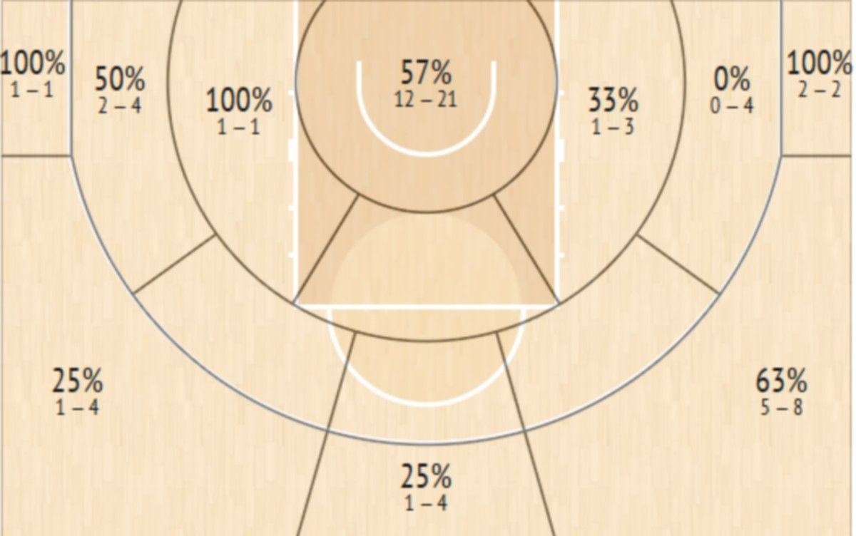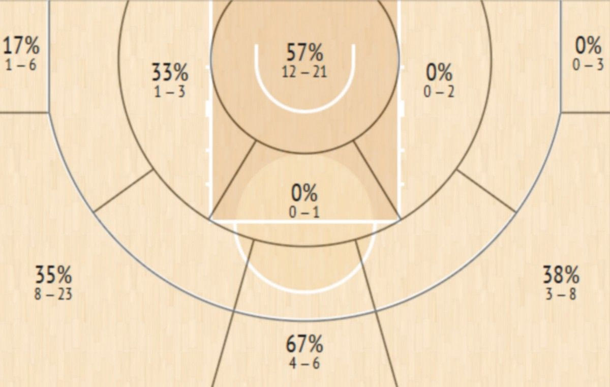 : 6.5 πόντοι και 3.1 ριμπάουντ μέσο όρο με 63.1% στα τρίποντα σε 11 λεπτά συμμετοχής (16 αγώνες – 1 ως βασικός)