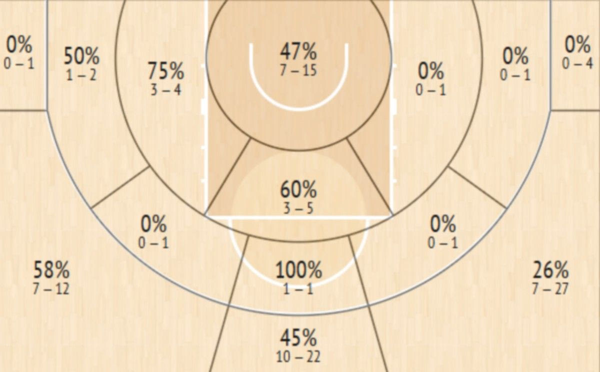 : 20.2 πόντοι, 3.4 ριμπάουντ, 3.6 ασίστ και 1 κλέψιμο μέσο όρο με 42.1% στα τρίποντα, σε 30 λεπτά συμμετοχής (16 αγώνες – 15 ως βασικός)