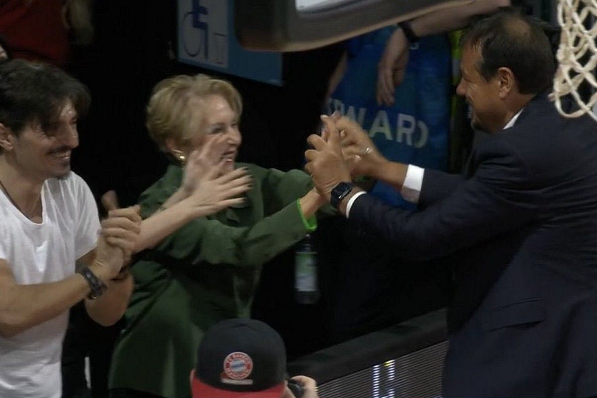 Το φινάλε του κρίσιμου αγώνα στο BMW Park βρήκε τους πράσινους νικητές απέναντι στην Μπάγερν με 82-75 και τον Εργκίν Αταμάν να τρέχει να το πανηγυρίσει με τον ιδιοκτήτη της ΚΑΕ και τη μητέρα του, Δέσποινα Γιαννακοπούλου.