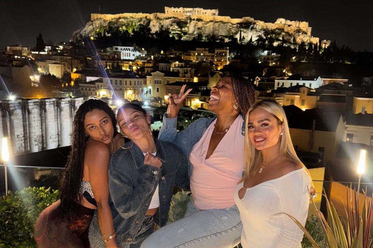 Η Μπλεν Κίγια, η Έμιλι και η Χέιλ Καλχούν μαζί με μία φίλη τους, επέλεξαν ένα από τα πιο κοσμοπολίτικα spots της πρωτεύουσας, με μαγευτική θέα στην Ακρόπολη.