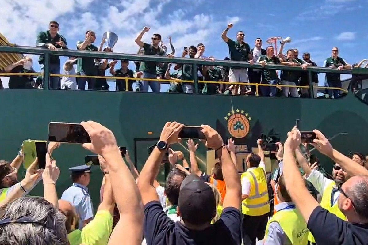 Ο Παναθηναϊκός AKTOR γιορτάζει. Όλος ο “πράσινος” οργανισμός γιορτάζει για την κατάκτηση της κορυφής της Ευρώπης, με τους οπαδούς της ομάδας να τρελαίνονται στην όψη των πρωταθλητών Ευρώπης και του τροπαίου όταν έκαναν την εμφάνισή τους στο ανοιχτό λεωφορείο που μετέφερε την ομάδα από το “Ελευθέριος Βενιζέλος” στο ΟΑΚΑ.
