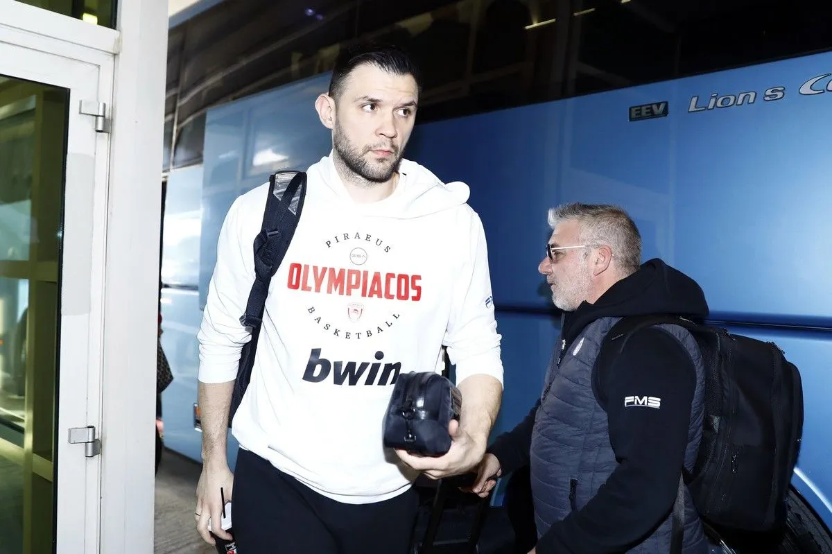 Η αποστολή των ερυθρολεύκων έφτασε στο Telekom Center Athens περίπου 2 ώρες πριν από το τζάμπολ. Στο πούλμαν των Πειραιωτών ήταν και ο Εβάν Φουρνιέ, που δεν έχει δικαιώμα συμμετοχής στο εν λόγω ματς, λόγω τιμωρίας, αλλά και οι Σακίλ ΜακΚίσικ – Κόρι Τζόσεφ (δεν είναι δηλωμένοι στο πρωτάθλημα), Φρανκ Νιλικίνα, Μουστάφα Φαλ.