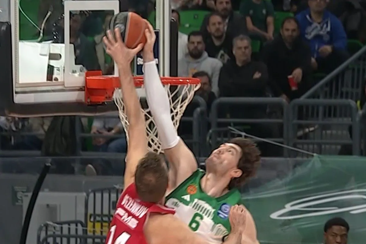 Εντυπωσιακή φάση στο πρώτο δεκάλεπτο του ντέρμπι Παναθηναϊκός AKTOR – Ολυμπιακός για τη Stoiximan GBL, με τον Τζέντι Όσμαν να κόβει εντυπωσιακά τον Σάσα Βεζένκοβ που είχε φύγει μόνος του στον αιφνιδιασμό.