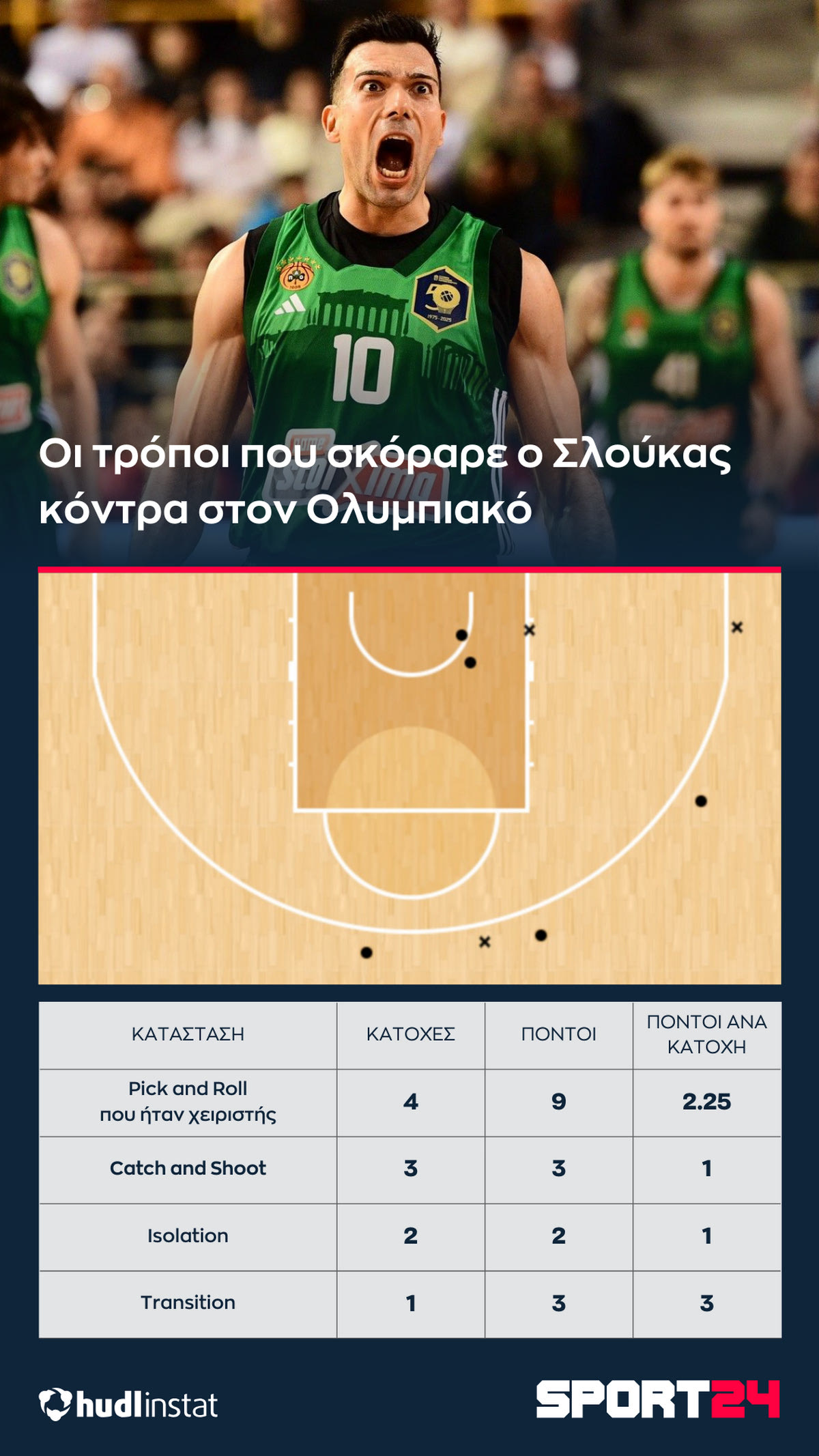 Στην ανάλυση των σημείων-κλειδιών του αγώνα είχε τονιστεί αυτό που λίγο-πολύ ξέρει όλη η Ευρώπη: Την δεδομένη περίοδο οι Κώστας Σλούκας και Κέντρικ Ναν έχουν πάρει για τα καλά τα ηνία στην επίθεση του Παναθηναϊκού AKTOR λόγω των τραυματισμών των Ματίας Λεσόρ και Ομέρ Γιούρτσεβεν, κουβαλώντας την ομάδα τους. Αυτό έκαναν και στο “αιώνιο” ντέρμπι, με τον Σλούκα να κρατάει τους “πράσινους” για τρεις περιόδους και τον Ναν να αναλαμβάνει δράση στο τέλος.
