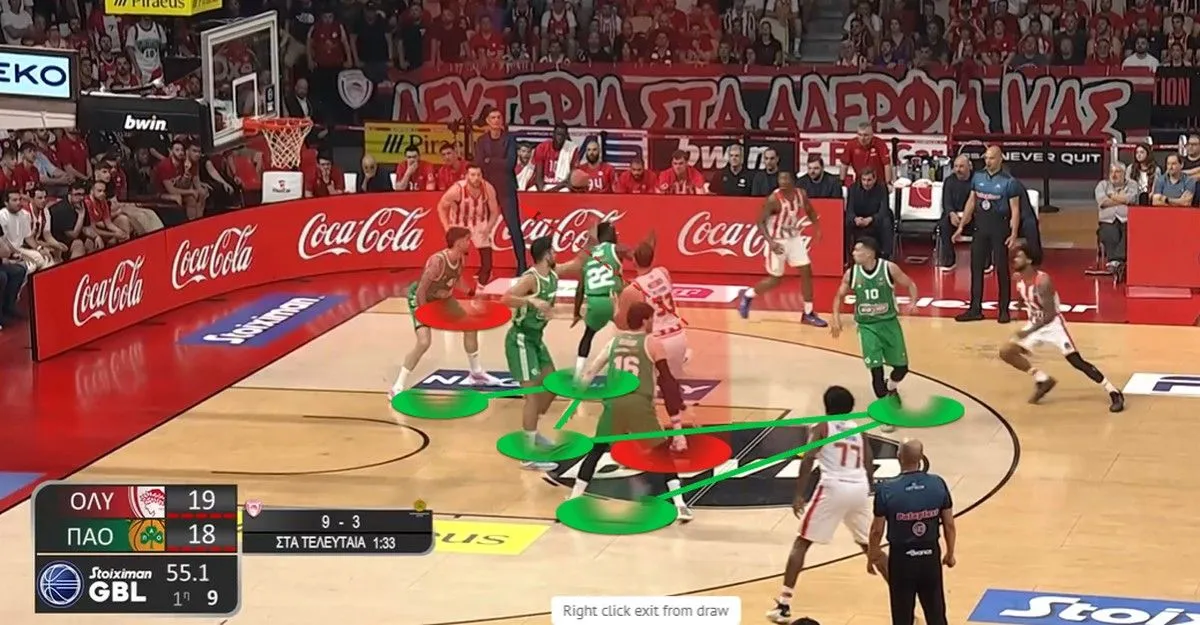Βεζένκοβ και Φουρνιέ στέλνουν τον Ναν στην γωνία, με τον Αμερικανό να αποφασίζει να πασάρει στον Όσμαν στην γωνία. Ο Παπανικολάου στέκεται ανάμεσα σε Όσμαν και Χουάντσο για να κλέψει πιθανή πάσα.
