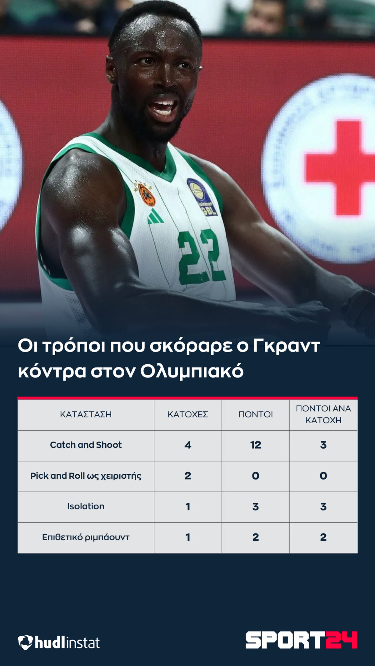 Αυτό είναι ένα απίθανο νούμερο για τους “πράσινους” και ένα απογοητευτικό νούμερο για τον Ολυμπιακό, που ένιωσε πιο έντονα από ποτέ το πόσο σημαντικός ήταν φέτος ο Γουίλιαμς-Γκος σε αυτό το σύνολο.