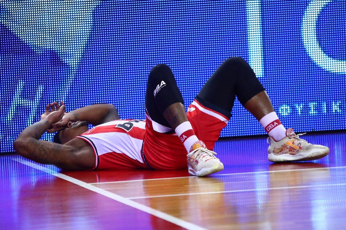 Ο παίκτης της ομάδας του Γιώργου Μπαρτζώκα έπεσε στο παρκέ δείχνοντας να πονάει στο πρόσωπο και αποχώρησε από τον αγωνιστικό χώρο.