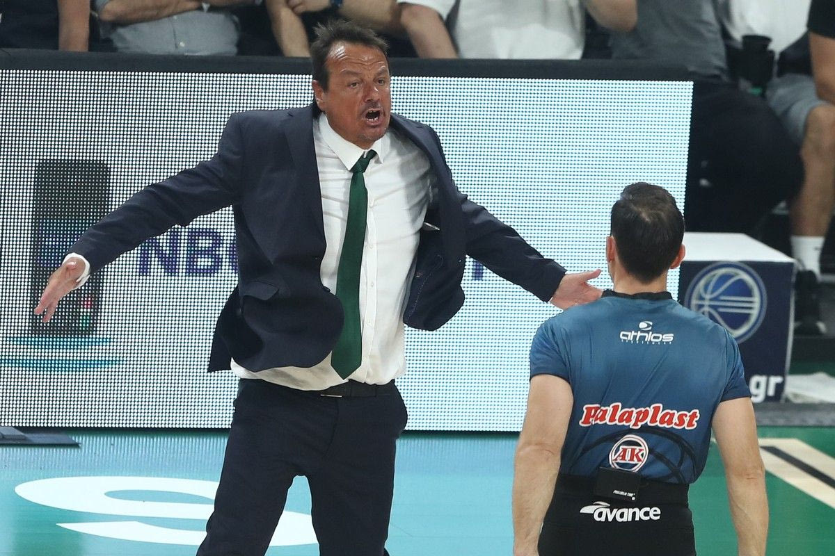 Ο Εργκίν Αταμάν έγινε έξαλλος με την απόφαση των διαιτητών να χρεώσουν με φάουλ τον Κώστα Σλούκα στην προσπάθεια να μπλοκάρει το σουτ του Νάιτζελ Γουίλιαμς-Γκος στο ντέρμπι του Παναθηναϊκού AKTOR με τον Ολυμπιακό για τη Stoiximan Basket League.