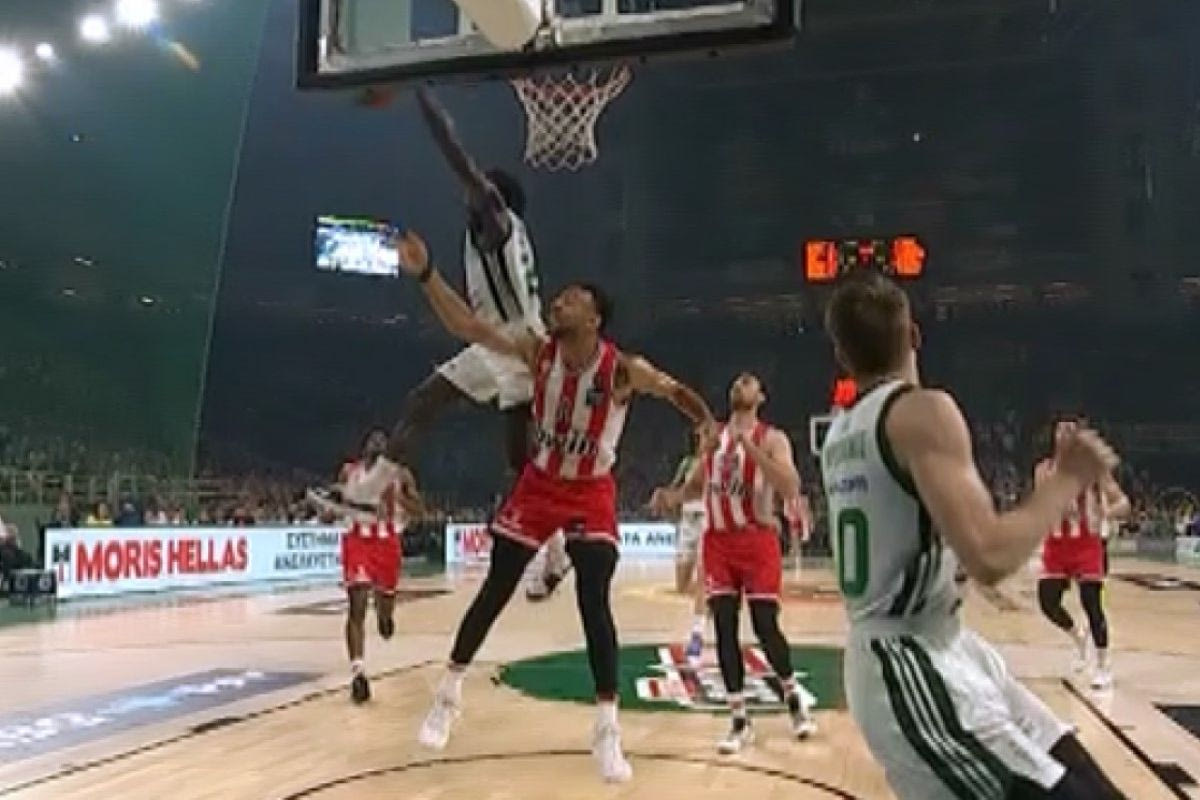 Ο Αμερικανός σκόρερ των πρασίνων πήρε φόρα και σταμάτησε εντυπωσιακά τον Γουίλιαμς-Γκος, ο οποίος ετοιμαζόταν να σκοράρει με λέι απ κάτω από το καλάθι.