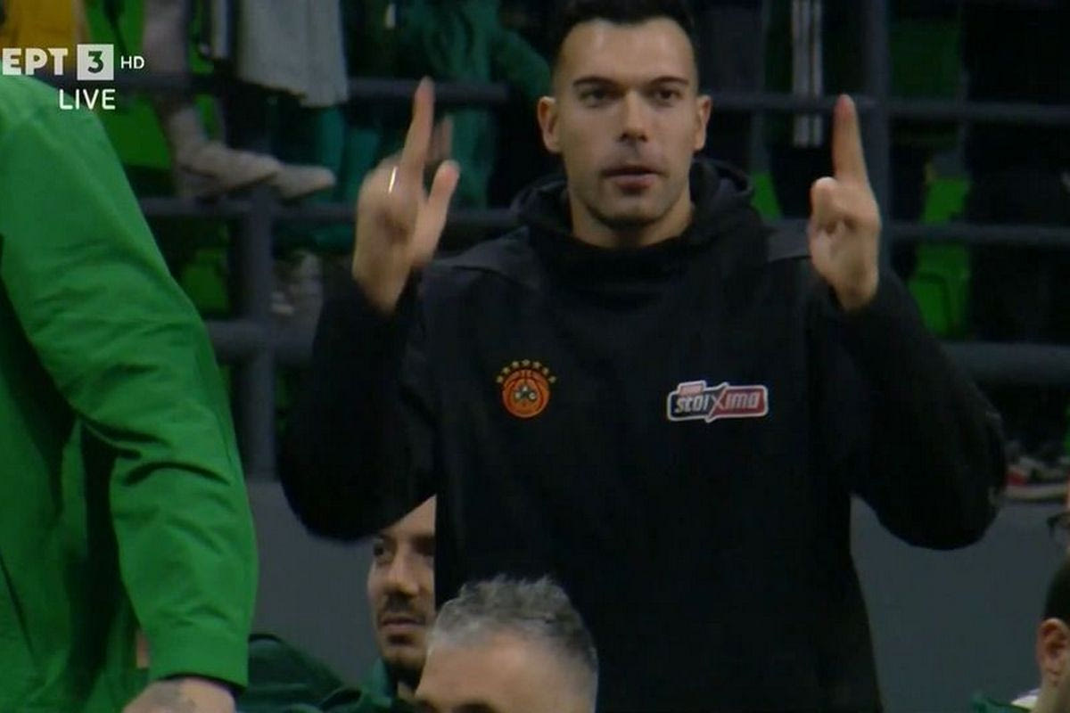 Παναθηναϊκός AKTOR – Περιστέρι: Οι πανηγυρισμοί του Κώστα Σλούκα για τα 3/3 τρίποντα του Δημήτρη Μωραΐτη