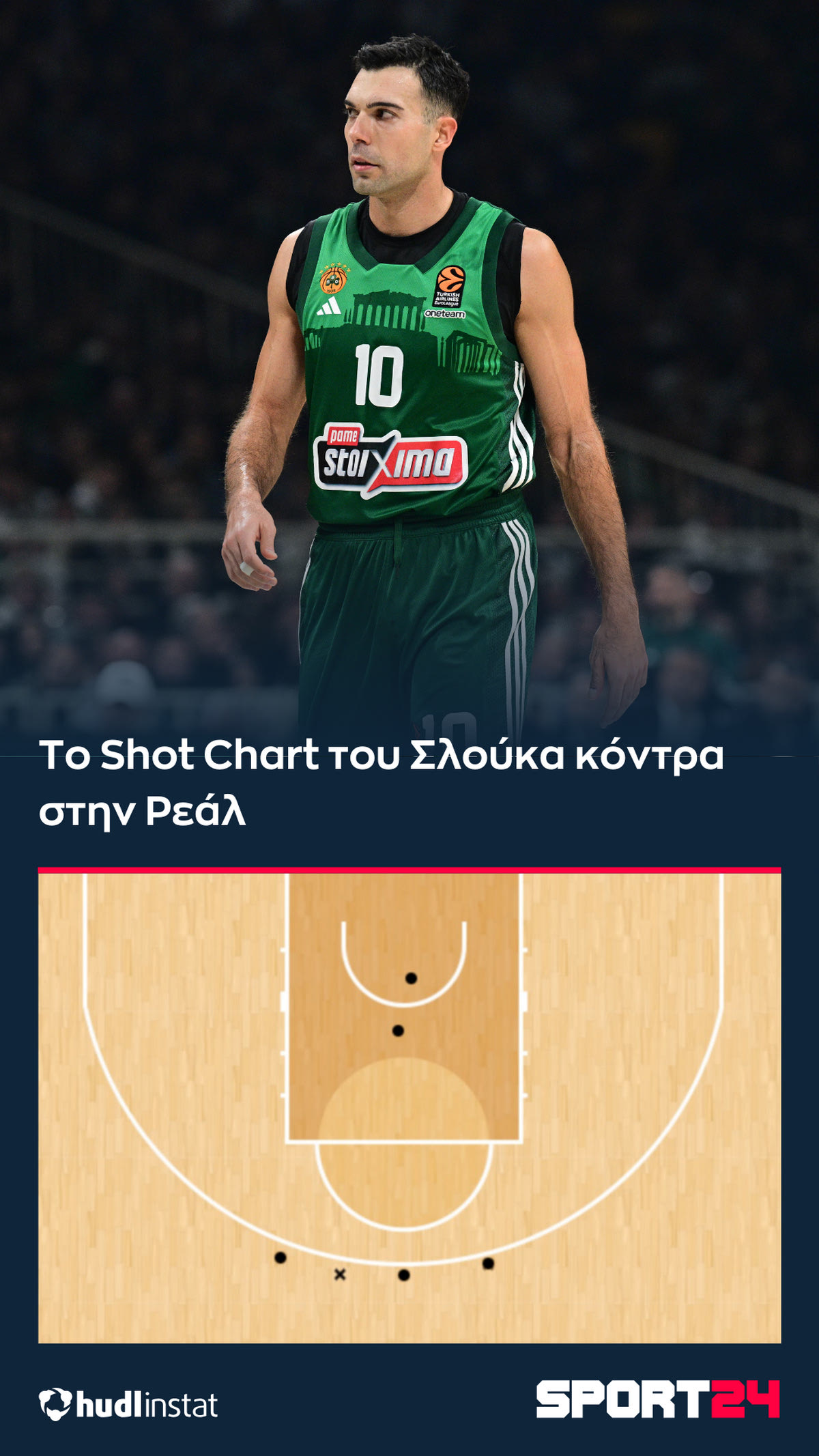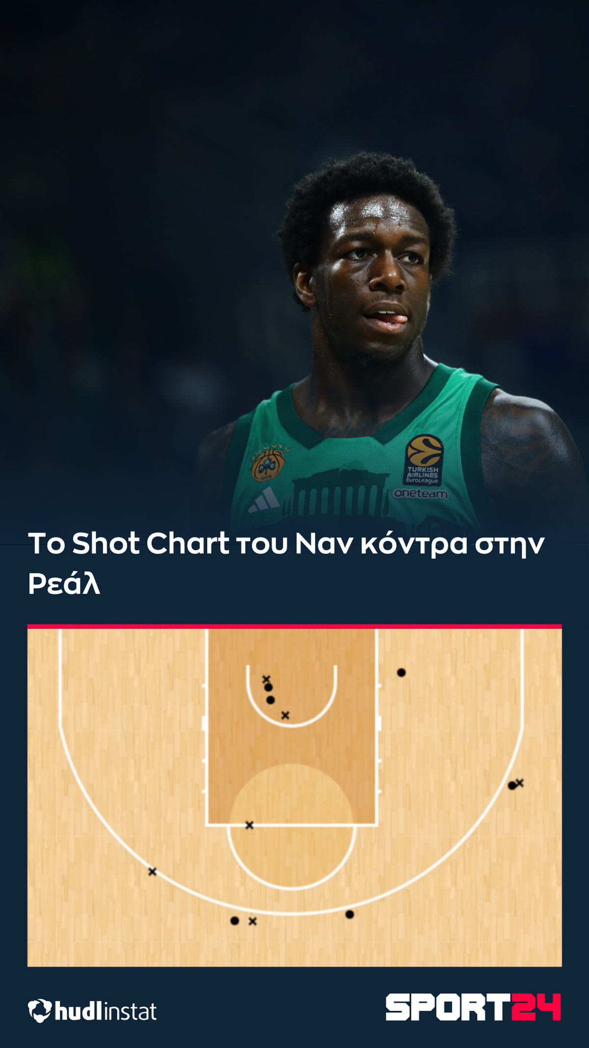 Με κυκλάκι τα εύστοχα σουτ, με “x” τα άστοχα