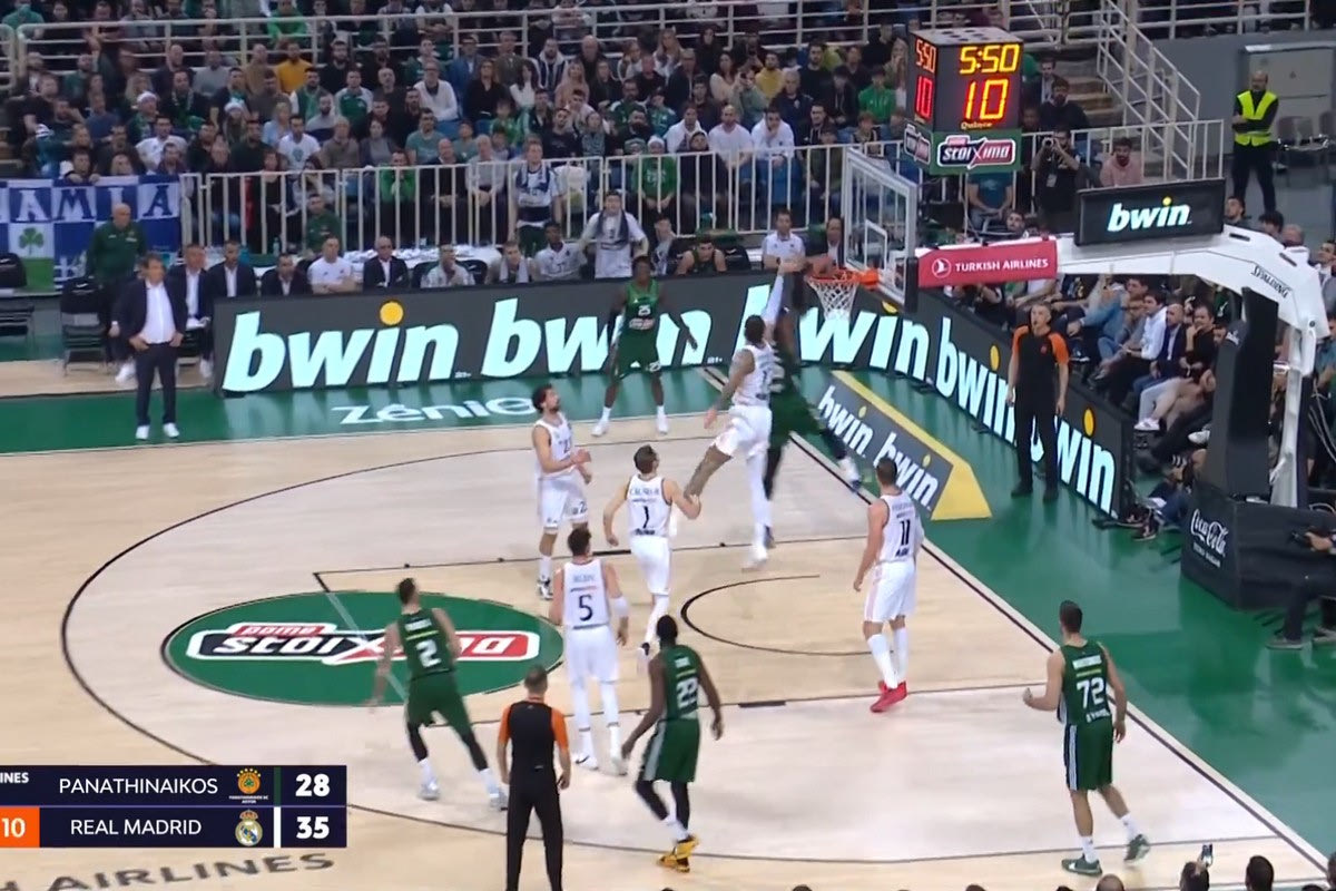 Εντυπωσιακός ο Ματίας Λεσόρ στη διάρκεια του δεύτερο δεκαλέπτου του πρώτου μέρους Παναθηναϊκός – Ρεάλ με τον Γάλλο να καρφώνει δύο φορές μπροστά στον Πουαριέ και να κάνει πόστερ τον συμπατριώτη του ο οποίος δεν μπόρεσε να τον κόψει πάνω από την στεφάνη.