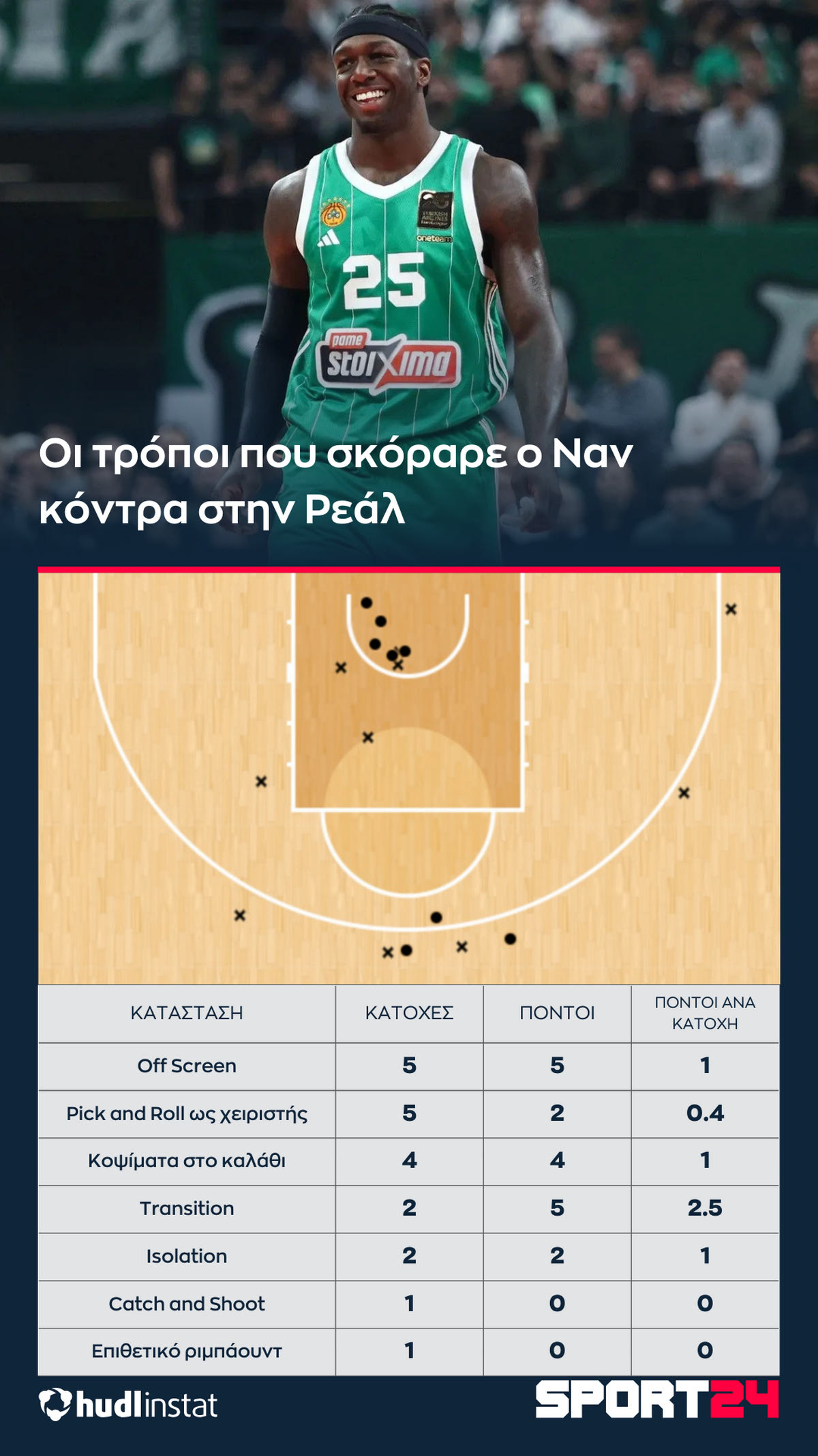 Ο Στέφανος Μακρής αναλύει με τη βοήθεια του Hudl Instat την νίκη του Παναθηναϊκού AKTOR επί της Ρεάλ. Οι πόντοι του Ναν, το σχήμα με τον Μήτογλου στο 5 που ξεκλείδωσε το ματς, ο Γκραντ και η άμυνα στο Post Up παιχνίδι της Ρεάλ.