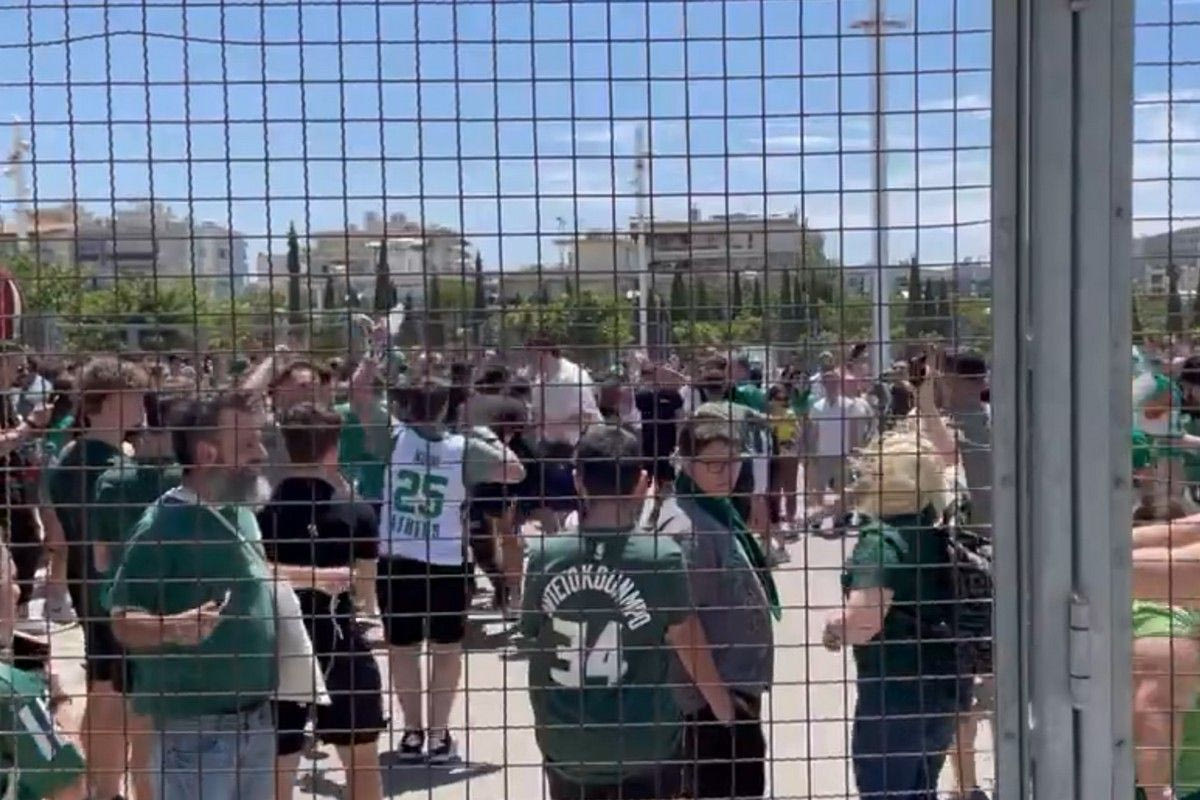 Υπέροχες στιγμές στον περιβάλλοντα χώρο του ΟΑΚΑ, με χιλιάδες οπαδού του Παναθηναϊκού να περιμένουν τους πρωταθλητές Ευρώπης και να τραγουδούν συνθήματα.