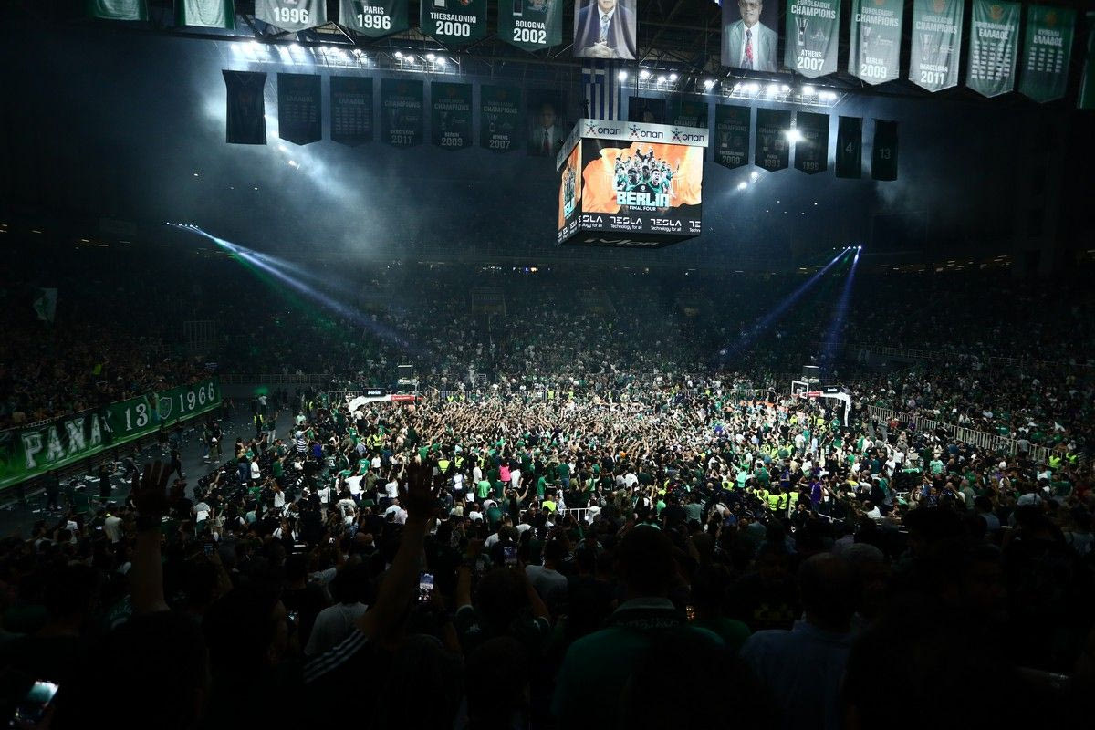 Οπαδοί του Παναθηναϊκού στο παρκέ του ΟΑΚΑ