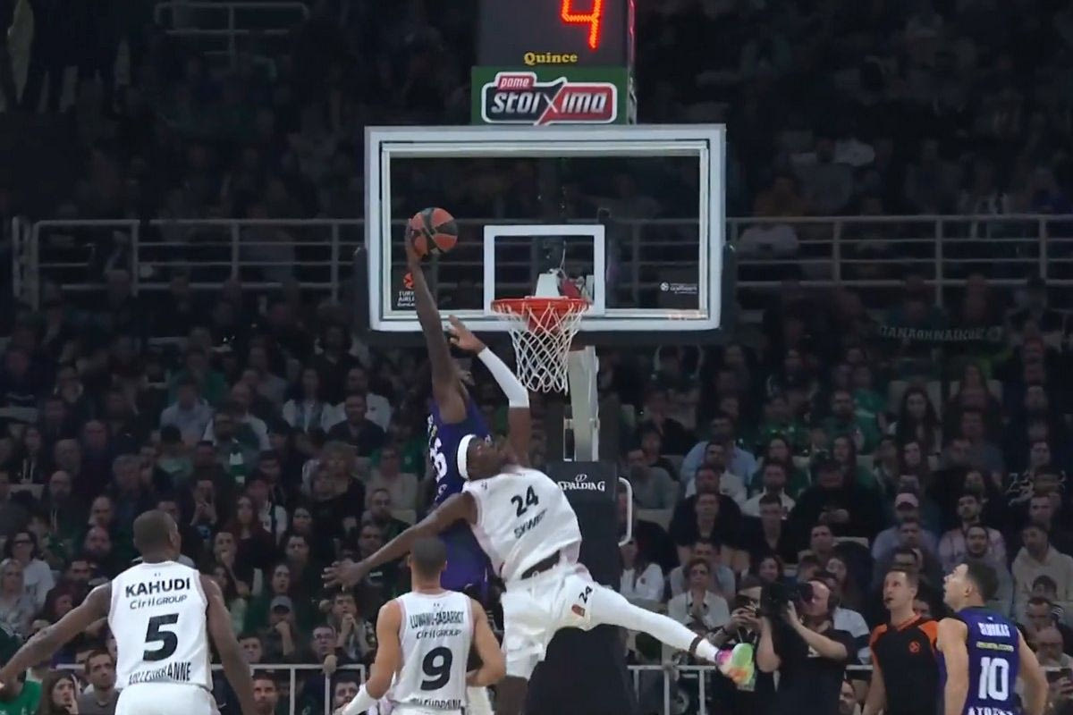 Ο Έλληνας γκαρντ έδωσε την ασίστ στον Γάλλο σέντερ που κάρφωσε εντυπωσιακά στο καλάθι της Βιλερμπάν.