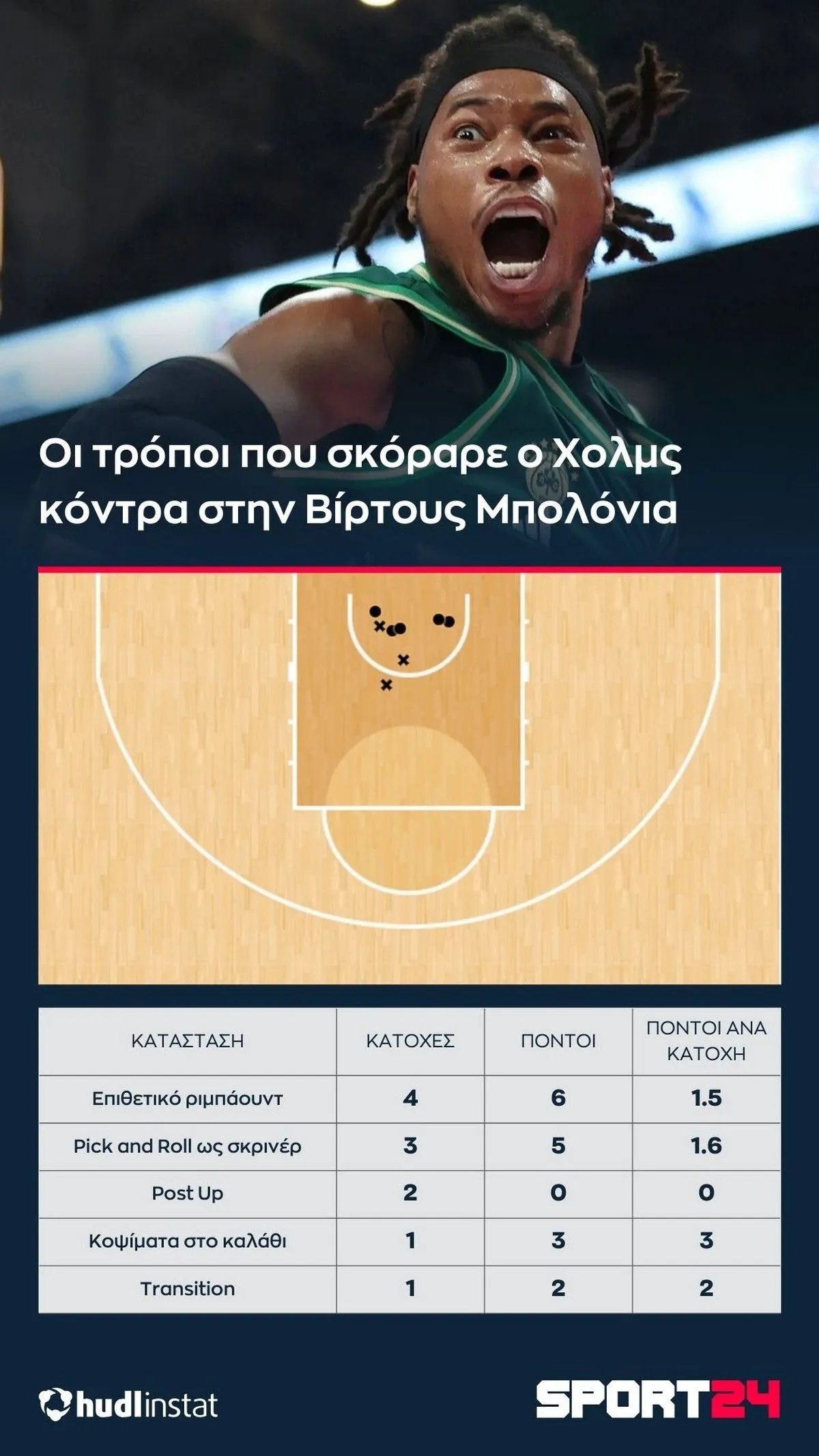 Παναθηναϊκός AKTOR – Βίρτους Μπολόνια: Το ξέσπασμα του Χολμς, το +18 της πεντάδας που κλείδωσε το ματς και η άμυνα στον Έντουαρντς