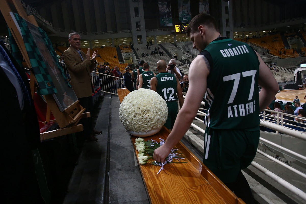 Πριν από την έναρξη της αναμέτρησης, οι παίκτες και οι προπονητές του Παναθηναϊκού άφησαν από ένα λευκό τριαντάφυλλο στα επίσημα του ΟΑΚΑ, στη θέση που καθόταν ο Παύλος Γιαννακόπουλος.