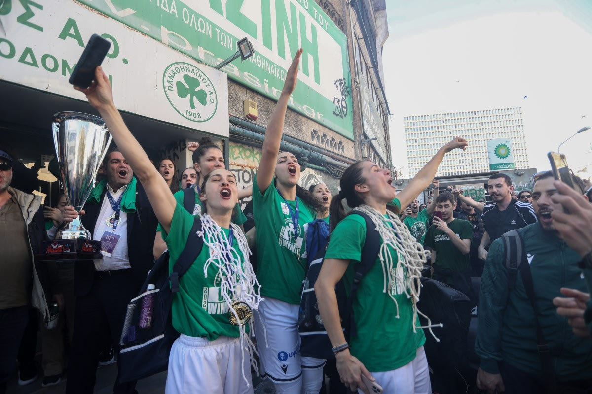 Παρέα με περίπου 300 οπαδούς πανηγύρισαν τα κορίτσια του Παναθηναϊκού την κατάκτηση του Κυπέλλου, με τον κόσμο να τους επιφυλάσει θερμή υποδοχή στη Λεωφόρο.
