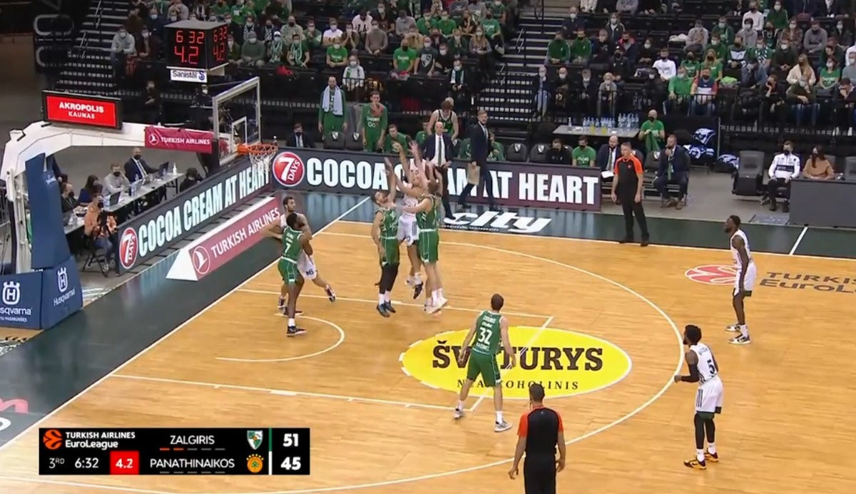Το γεγονός ότι σε 4 περιπτώσεις ο Παναθηναϊκός δεν μπόρεσε καν να περάσει την μπάλα κοντά στο καλάθι απλώς επειδή η Ζάλγκιρις έπαιζε άμυνα από μπροστά στο post (χωρίς να έρχεται βοήθεια από πίσω) σχετίζεται άμεσα (πάλι) με την απουσία ενός παίκτη να μπορέσει έστω να δώσει μία σωστή πάσα. Την ίδια στιγμή όμως, οι “πράσινοι” είδαν κάποια στιγμή να συμβαίνει αυτό: