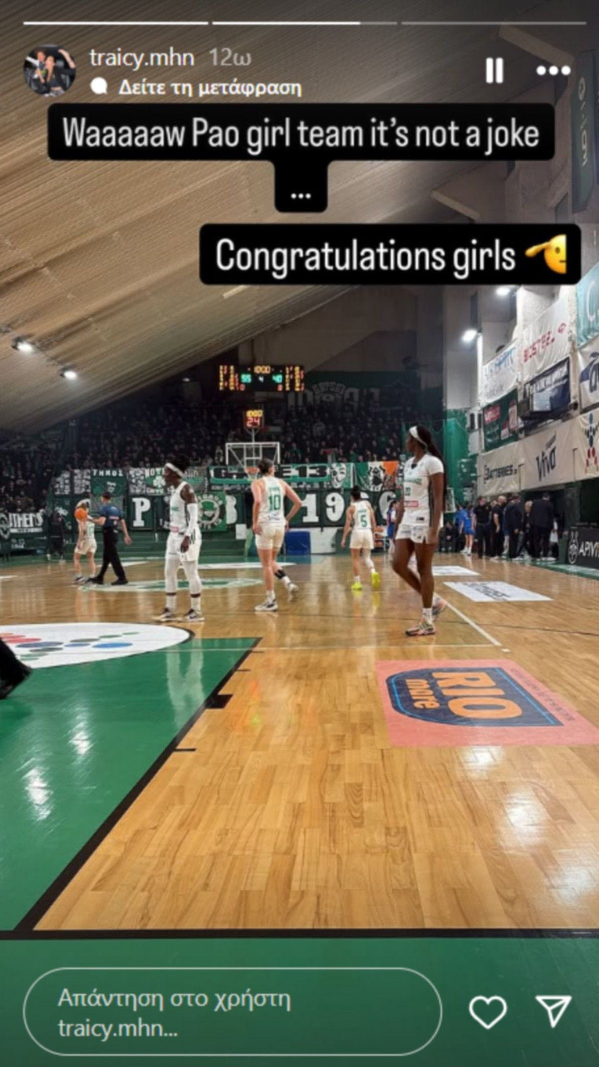 Η ανάρτηση αυτή δείχνει τον ενθουσιασμό της για την απόδοση της ομάδας, ενώ παράλληλα αναδεικνύει τη στήριξη που λαμβάνει το γυναικείο τμήμα από την “πράσινη” οικογένεια.