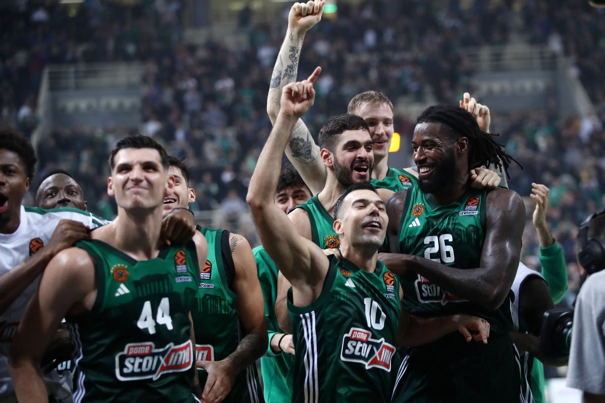 Παναθηναϊκός: Με τον αρχηγό Σλούκα να δίνει το σύνθημα, οι παίκτες γιόρτασαν μαζί με τον κόσμο τη νίκη επί της Βαλένθια