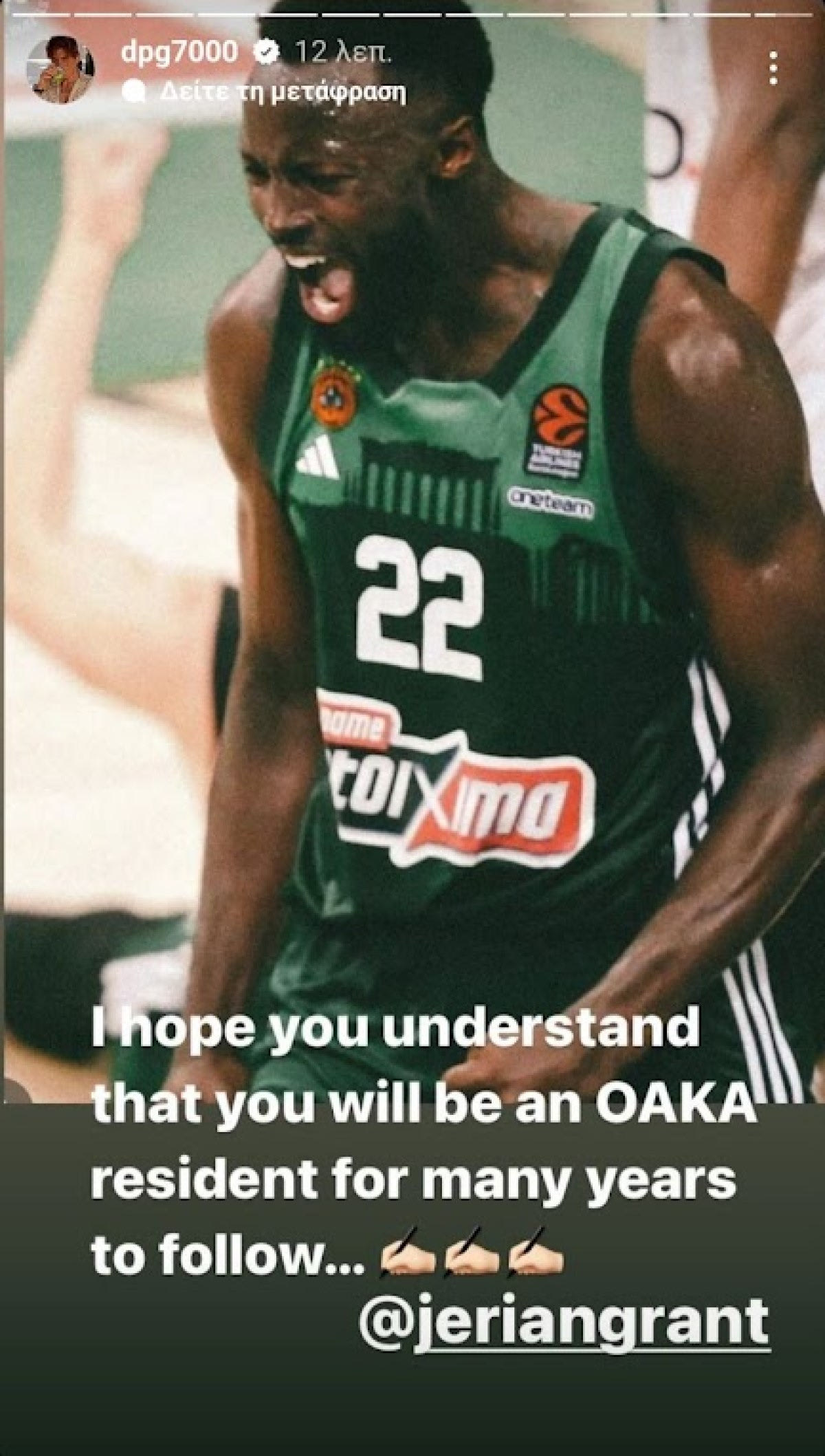 Συγκεκριμένα, ο διοικητικός ηγέτης της πράσινης ΚΑΕ, δημοσίευσε μία φωτογραφία του Αμερικανού γκαρντ, την οποία συνόδευσε με την λεζάντα: “Ελπίζω να καταλαβαίνεις ότι θα είσαι κάτοικος ΟΑΚΑ για πολλά χρόνια που ακολουθούν”.