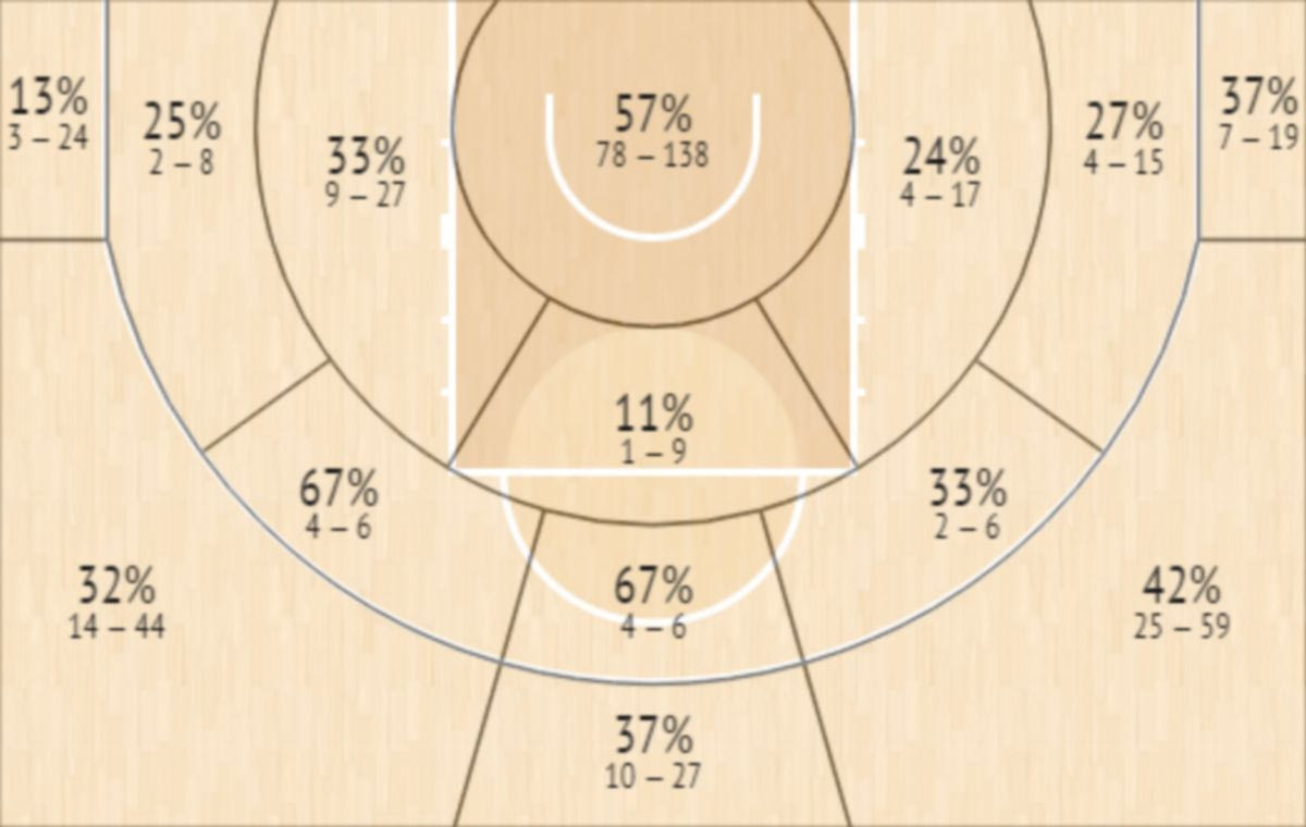 Ιδού και το Shot Chart του από την σεζόν 2020/21 σε όλες τις διοργανώσεις με την Ούνικς: