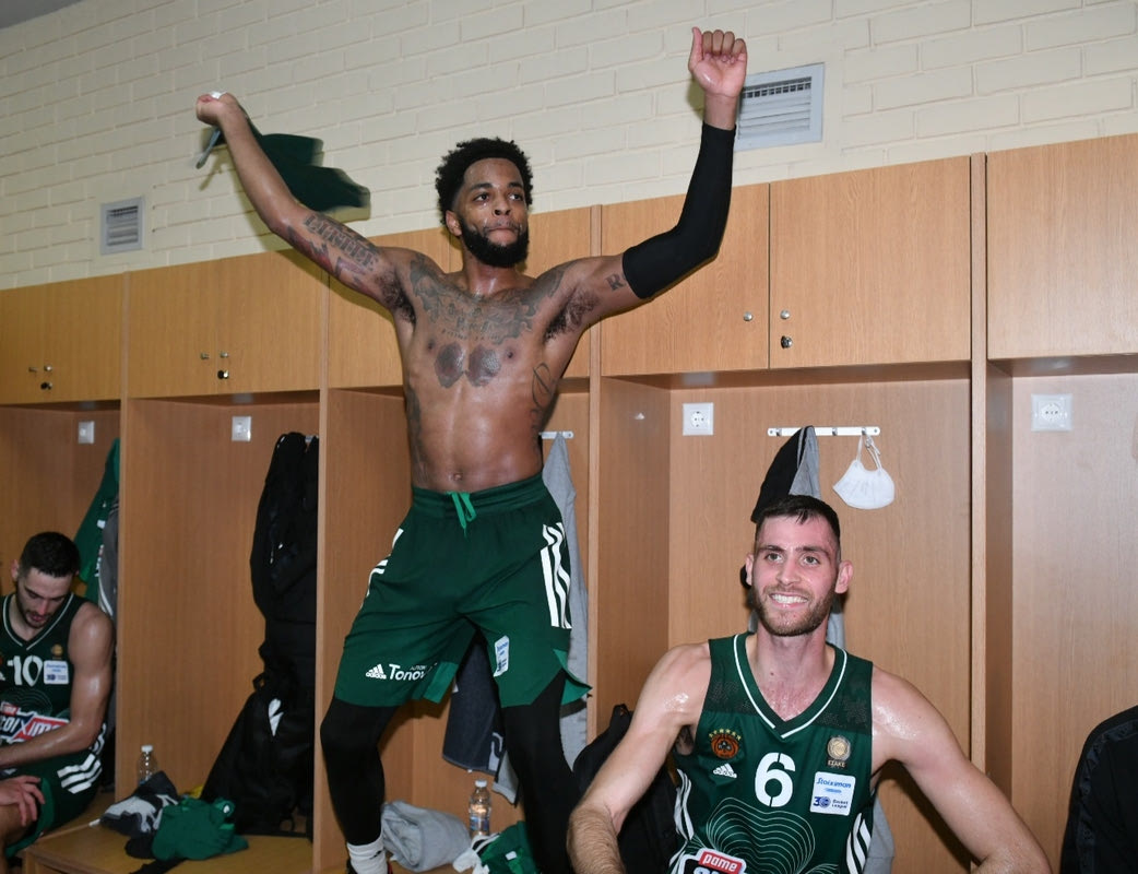 Οι παίκτες του Δημήτρη Πρίφτη προχώρησαν σε έξαλλους πανηγυρισμούς στα αποδυτήρια του ΣΕΦ, με τον Μέικον μάλιστα να χορεύει, όντας εκστασιασμένος,