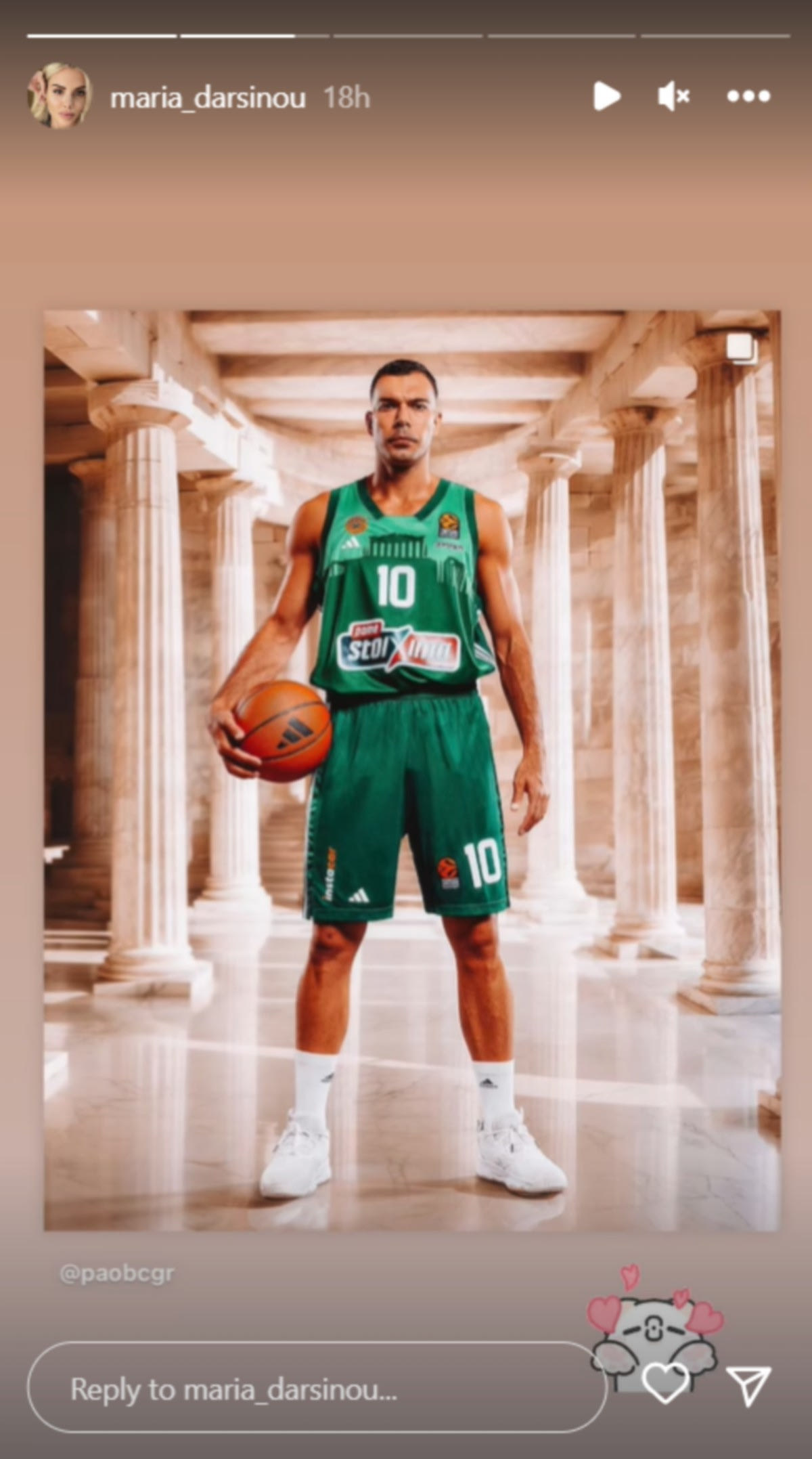 Η σύζυγός του, Μαρία Δαρσινού, η οποία τον στηρίζει και είναι στο πλευρό του σε κάθε βήμα της καριέρας του, ανήρτησε στο Instagram ένα story με τον αγαπημένο της ντυμένο στα πράσινα.