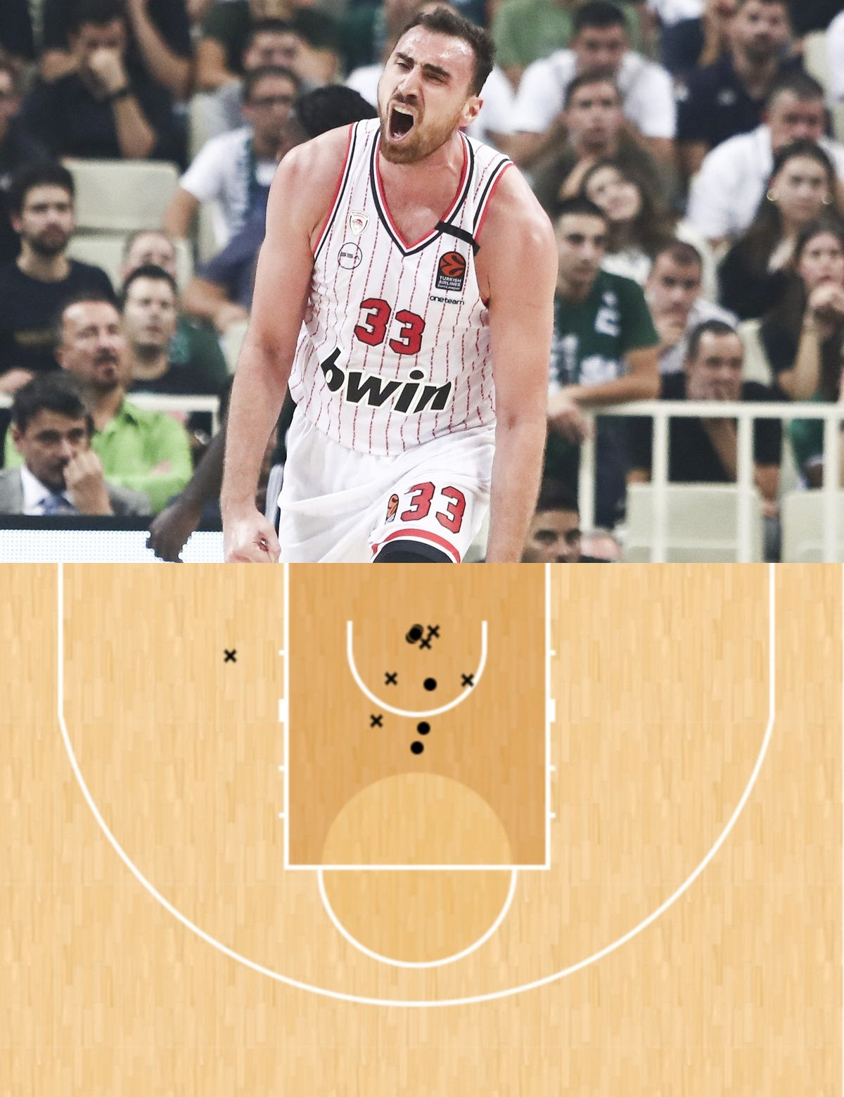 Το Shot Chart του Κώστα Σλούκα στον αγώνα με τον Ολυμπιακό ΘΑΝΑΣΗΣ ΔΗΜΟΠΟΥΛΟΣ / EUROKINISSI/hudlstat