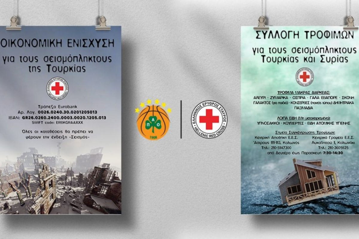 Πρωτοβουλία για την ενίσχυση των σεισμόπληκτων σε Τουρκία και Συρία αναλαμβάνει η ΚΑΕ Παναθηναϊκός σε συνεργασία με τον Ερυθρό Σταυρό.