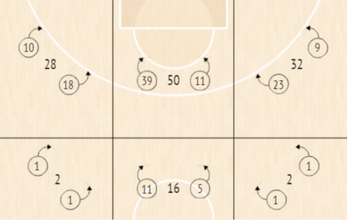 Στο γράφημα του Instat Scout μπορεί να διακρίνει κανείς όσα πικ εν ρολ έχει πάρει ο ίδιος.