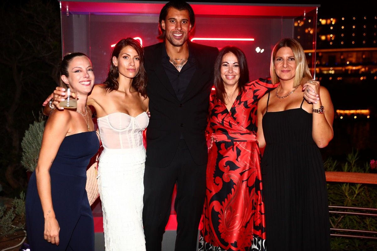 Στο πλευρό του πρώην μπασκετμπολίστα, όπως και σε κάθε του βήμα, ήταν η αγαπημένη του Στέλλα Κωστοπούλου, λίγους μήνες μετά τη γέννηση του δεύτερου παιδιού τους.