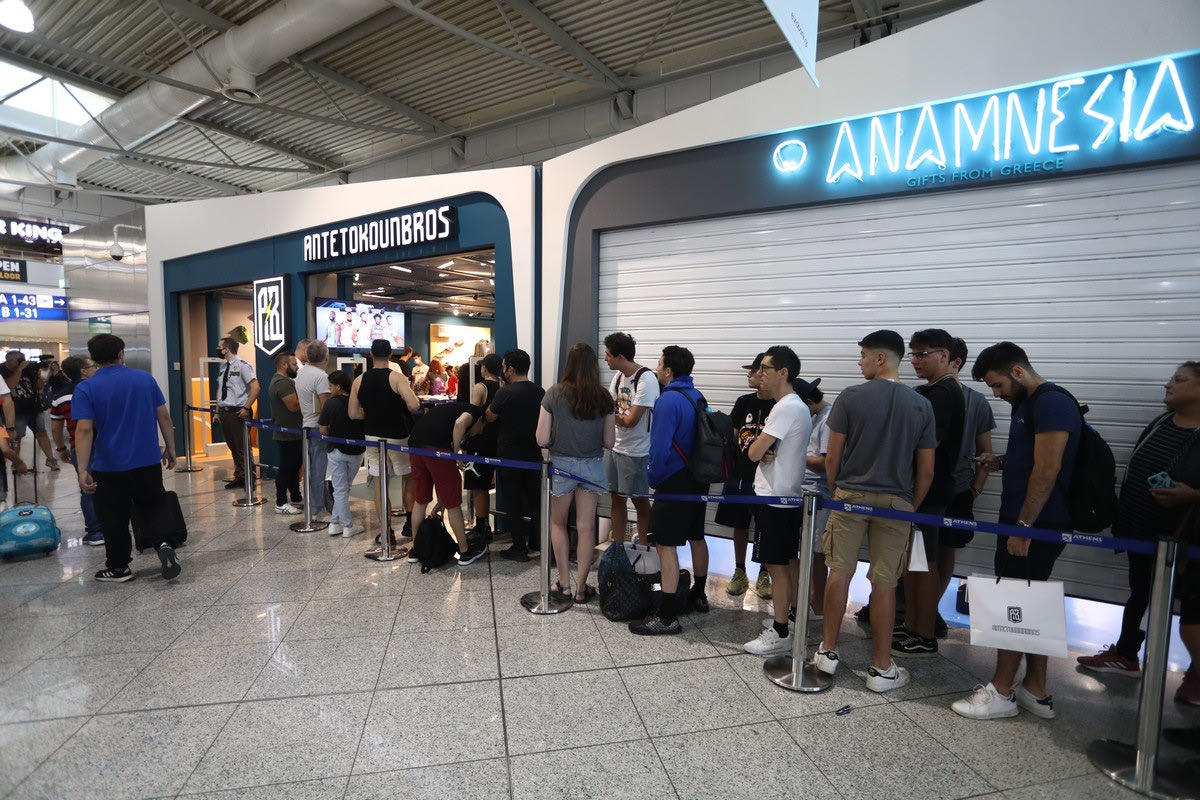 Πανζουρλισμός επικρατεί στο "Ελ. Βενιζέλος" για τον Γιάννη Αντετοκούνμπο, καθώς πάνω από 1.000 άτομα έχουν σχηματίσει ουρά για να αποθεώσουν τους Antetokounbros στα εγκαίνια του καταστήματός τους στο αεροδρόμιο.