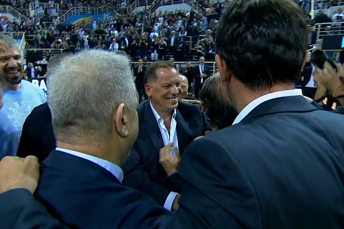 Το κλίμα ήταν εξαιρετικό συγκινητικό, με τον θρύλο του Δικεφάλλου να βλέπει τη φανέλα με το νούμερο 7 να ανεβαίνει στον ουρανό της PAOK Sports Arena και τους συμπαίκτες του να μπαίνουν για να τον αγκαλιάσουν.